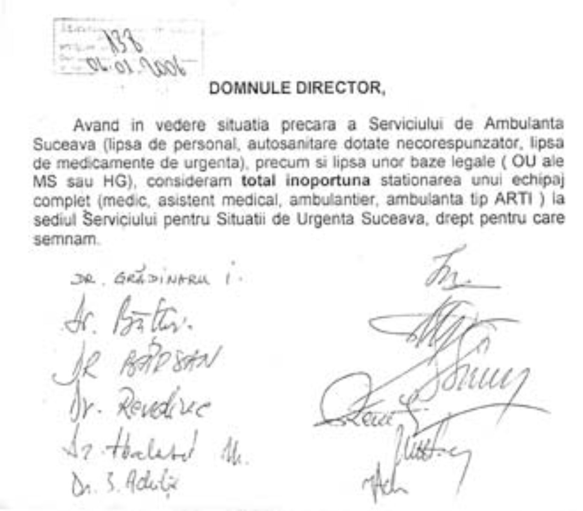 Daniel Martiniuc spune că înainte de înființarea SIAMUD, medicii de la stația din Suceava i-au înaintat un protest scris, pe care l-au semnat toți, și în care menționau că sunt împotriva organizării unei stații de intervenție de acest gen (vezi facsimil).