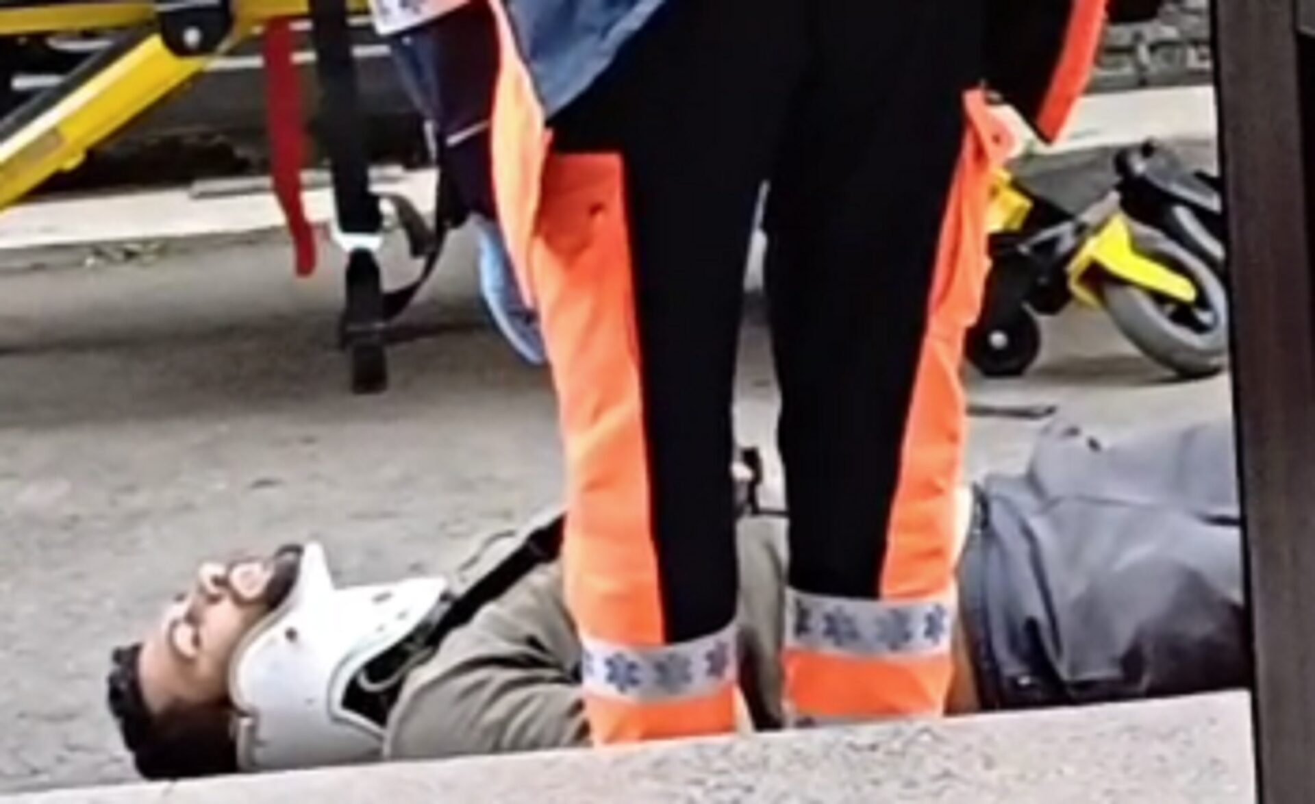 La fața locului, căzut la pământ, a fost găsit un tânăr de 23 de ani, care acuza dureri mari la un picior.