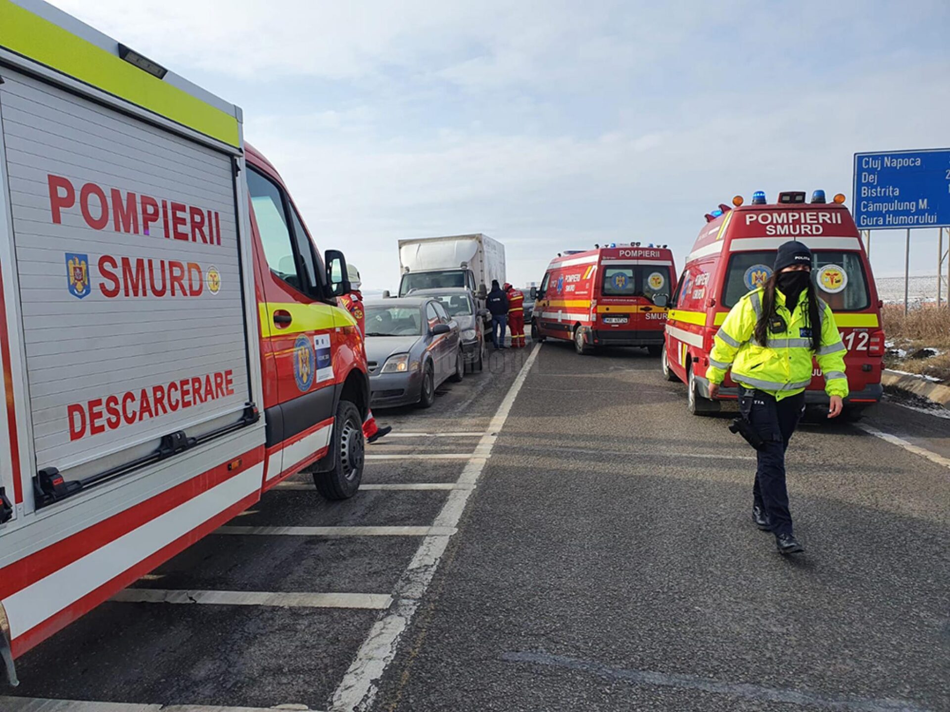 La fața locului a fost solicitată intervenția pompierilor din cadru ISU ”Bucovina” Suceava, care au venit cu două autospeciale de descarcerare și două ambulanțe SMURD, constatând că nici una dintre cele 6 persoane implicate în accident nu era încarcerată și nu avea probleme deosebite de sănătate în urma coliziunilor față-spate produse. În urma investigării medicale a celor implicați, doar două persoane, un copil și un adult dintr-un autoturism, au fost transportate la spital pentru investigații suplimentare. Polițiștii au făcut cercetări la locul producerii accidentului pentru a determina mecanismul de producere a acestuia și a stabili vinovăția, care se pare că aparține șoferului autoutilitarei, care nu a putut opri vehiculul la timp.
