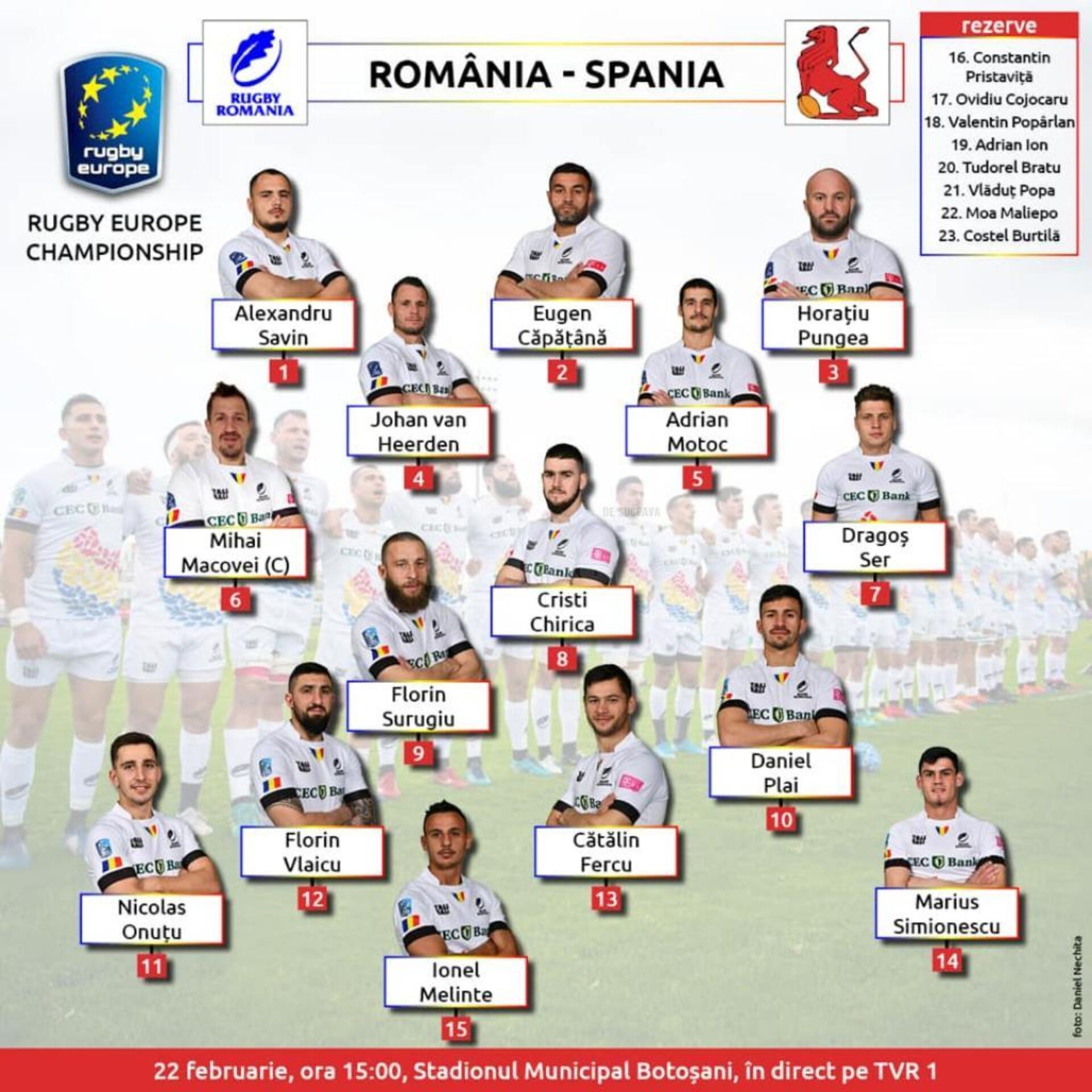 Staff-ul tehnic a anunțat în cursul zilei de vineri echipa de start, iar ambii jucători suceveni convocați pentru această partidă, humorenii Mihai Macovei și Daniel Plai, sunt anunțați titular. Primul va fi și căpitan al echipei și va evolua în linia a III-a a grămezii, în timp ce Daniel Plai va evolua cu numărul 10, pe postul cheie de mijlocaș la deschidere.