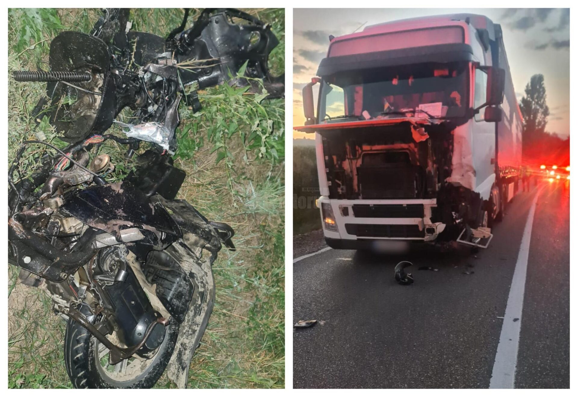 Motocicleta era condusă pe sensul de mers de la Siret spre Suceava, iar impactul cu autotrenul a fost nimicitor.