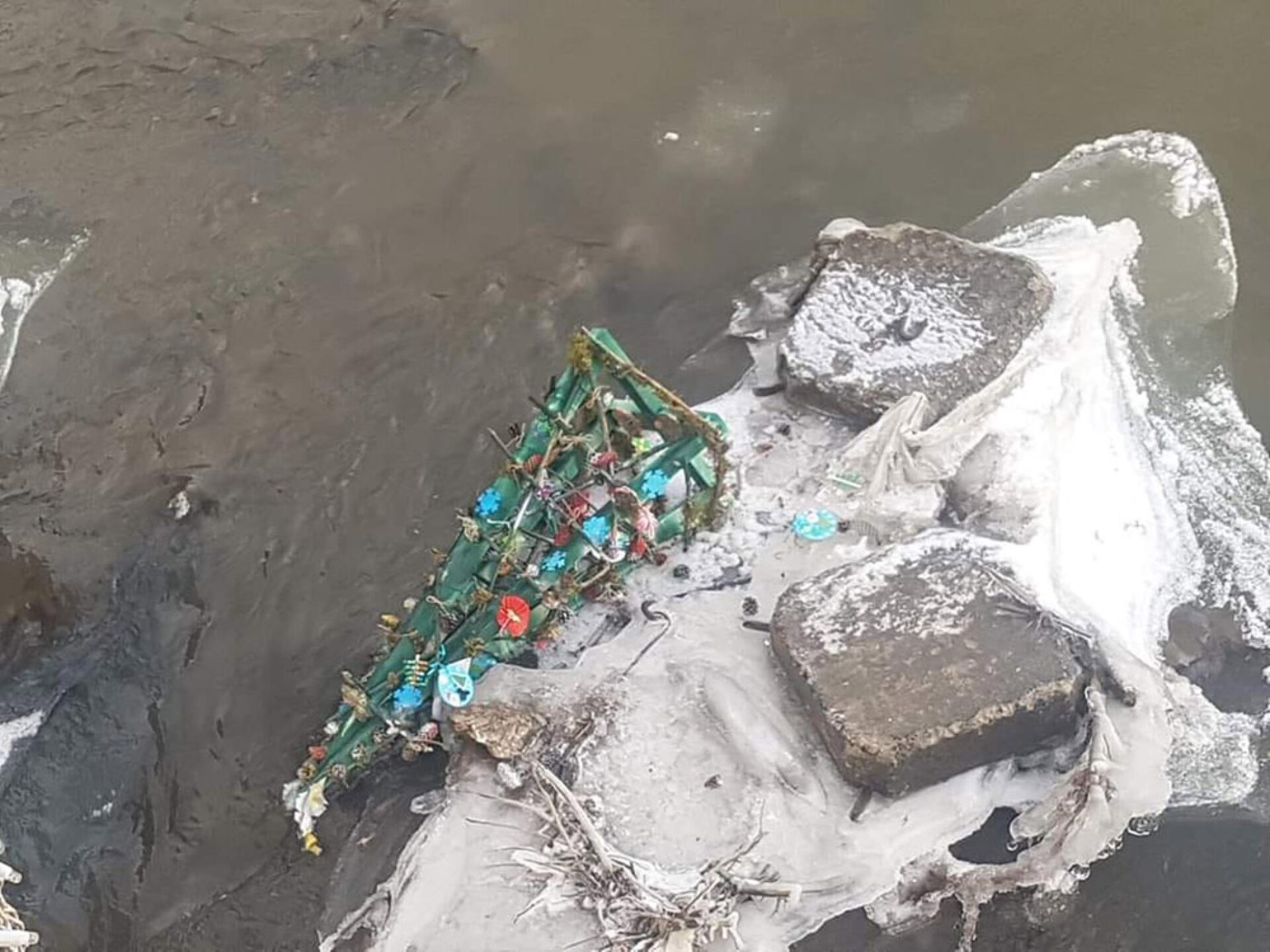 Doi „viteji” au aruncat în râul Dorna „brăduțul copilăriei” împodobit de preșcolarii unei grădinițe din Vatra Dornei
