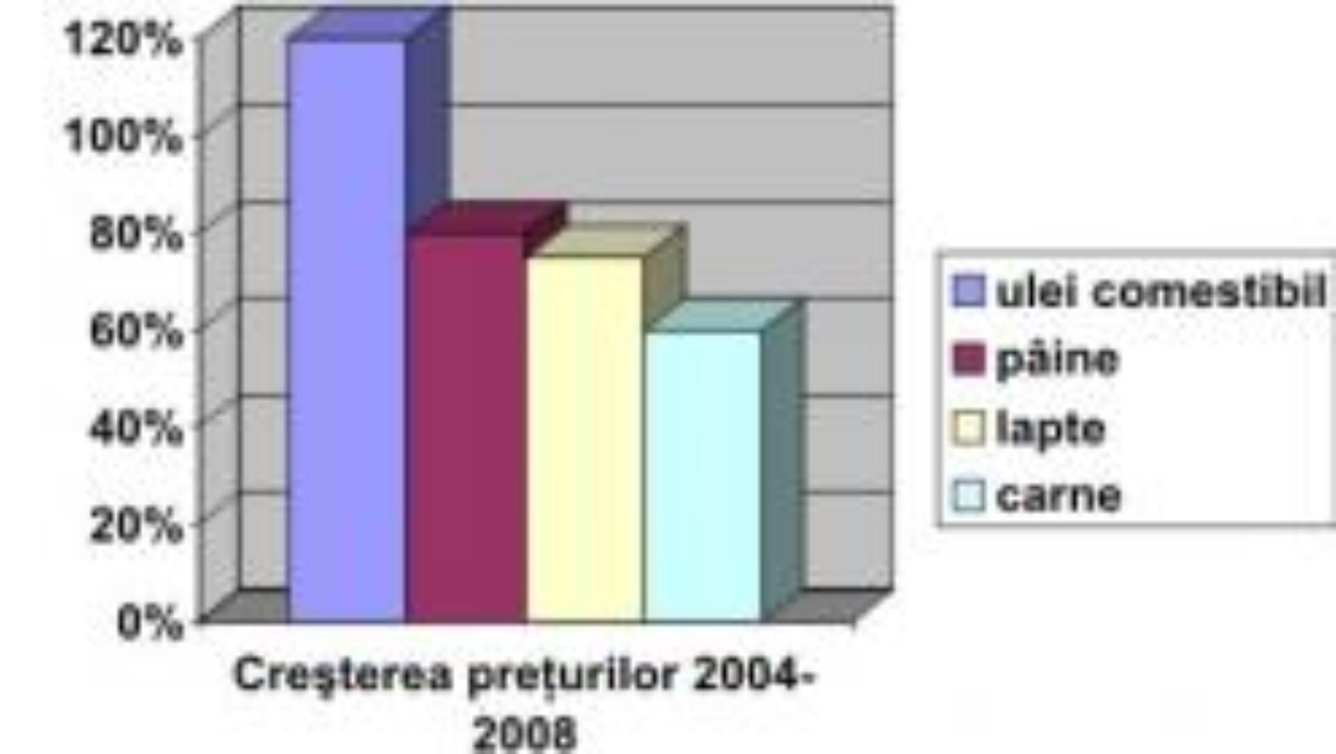 La produsele alimentare, cea mai mare creștere a înregistrat-o prețul la ulei, care „s-a dus” cu 120%. Prețul pâinii a crescut cu 80%, al laptelui cu 75% și al cărnii cu 60%.