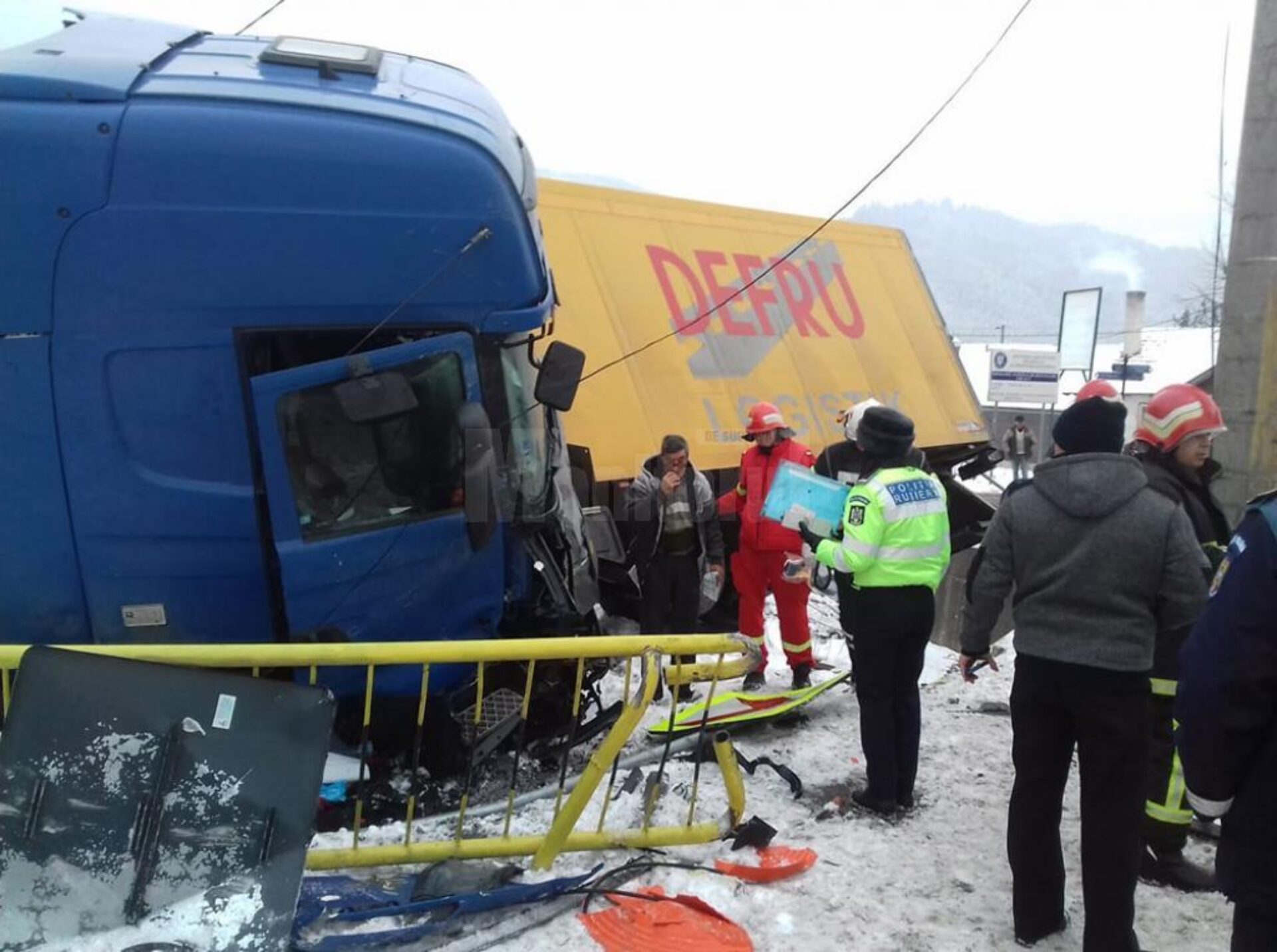 Mastodontul de zeci de tone a trecut peste balustrada de protecție și s-a oprit în curtea gospodăriei
