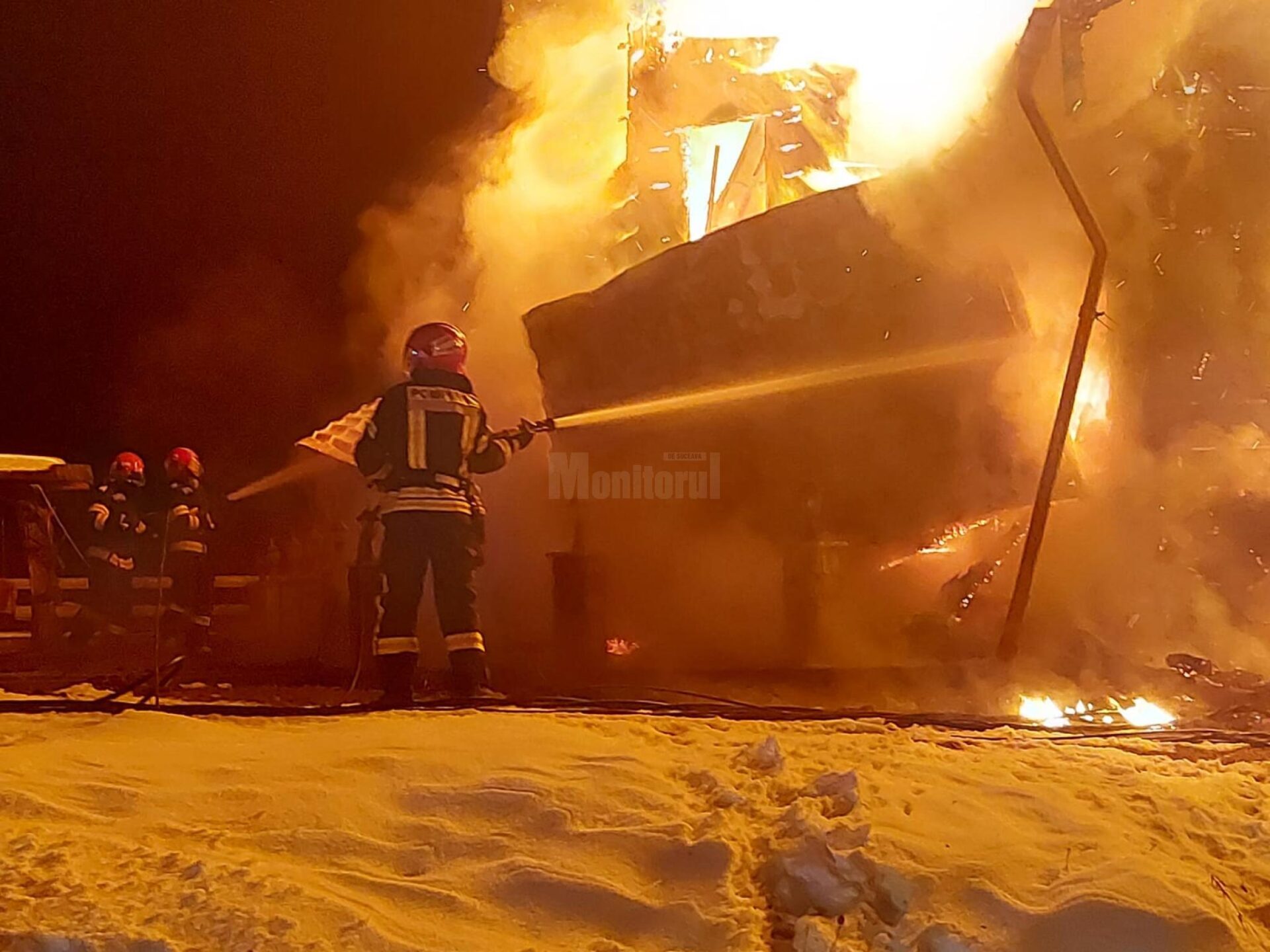 Pompierii de la Câmpulung Moldovenesc, împreună cu lucrători ai Serviciului Voluntar pentru Situații de Urgență Moldova Sulița, au intervenit cu trei autospeciale de apă, găsind o casă din lemn care ardea generalizat. În pericol erau și câteva anexe din apropiere.
