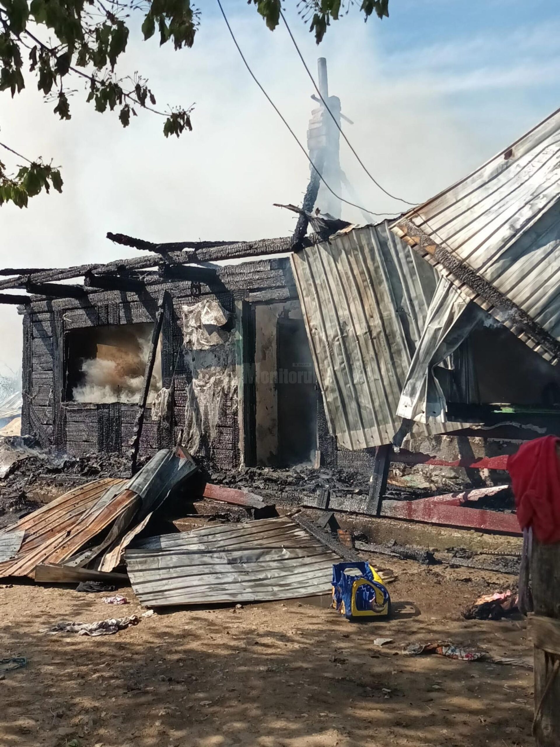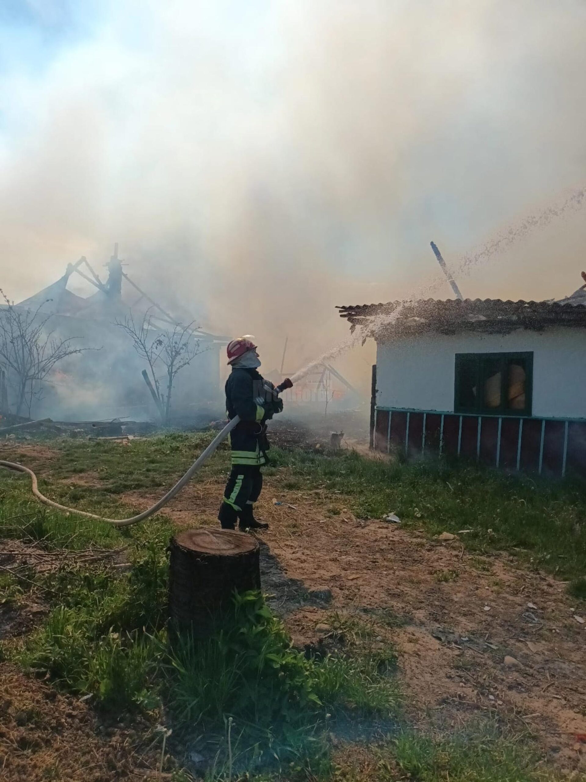 Un puternic incendiu a izbucnit duminică după-amiază în comuna Arbore, flăcările cuprinzând două case și două anexe gospodărești.