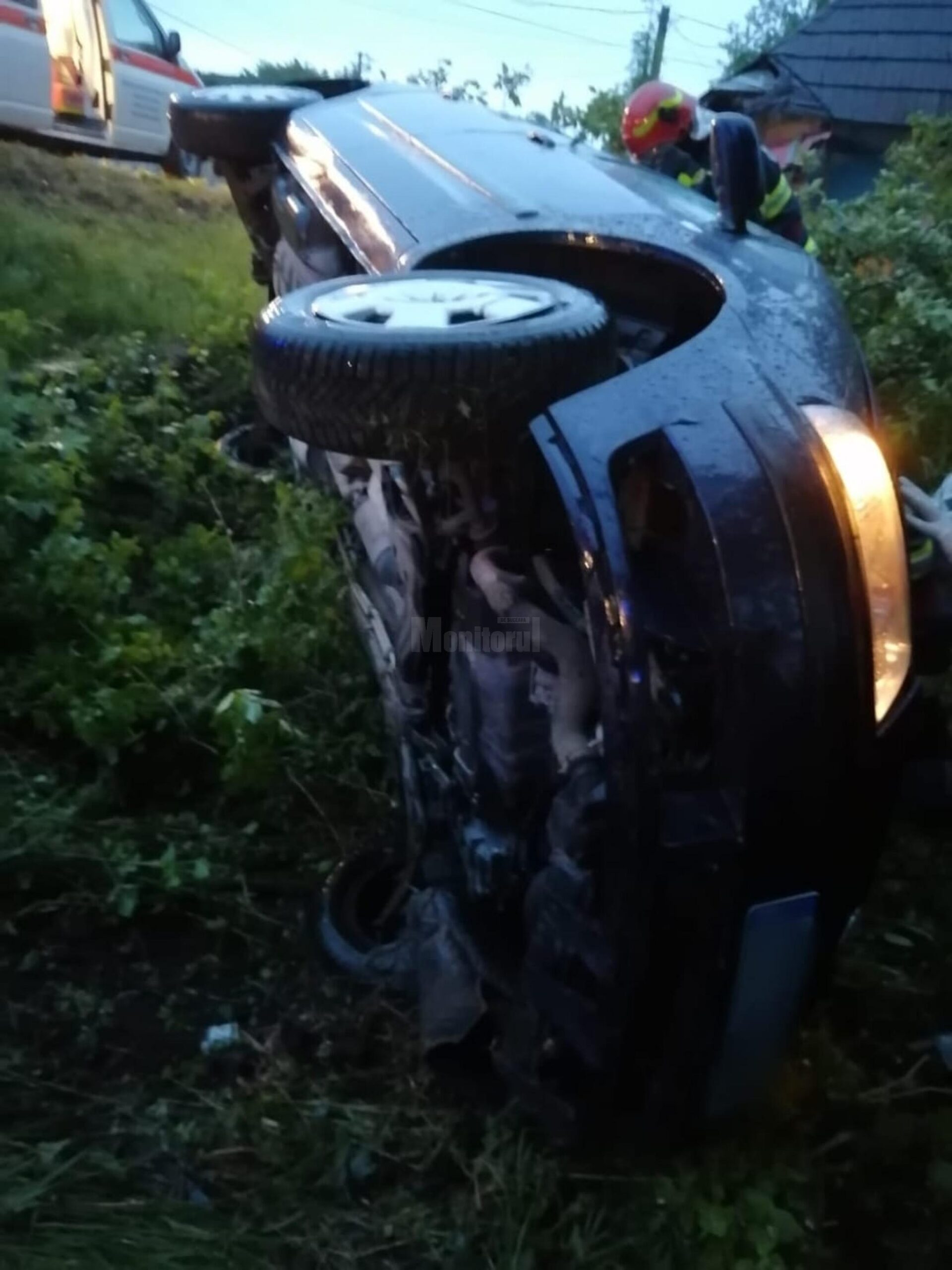 Pompierii militari de la Rădăuți au intervenit, miercuri dimineață, în jur de ora 5.00, la un accident rutier produs pe DN 2H, la Milișăuți, unde un autoturism a ieșit în afara carosabilului și s-a răsturnat.