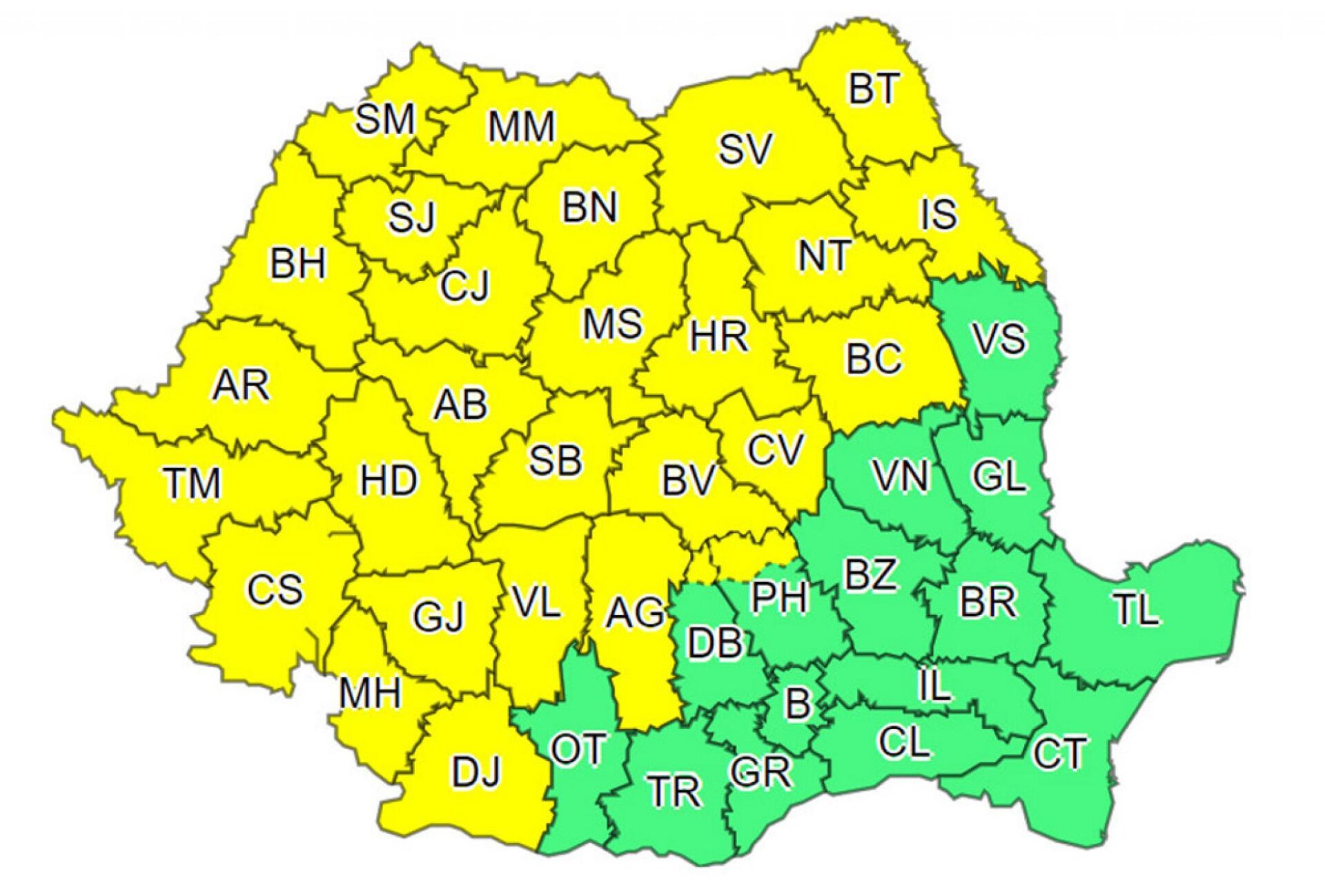 Codul galben este valabil pentru întreg județul Suceava, dar și numeroase alte regiuni ale țării.