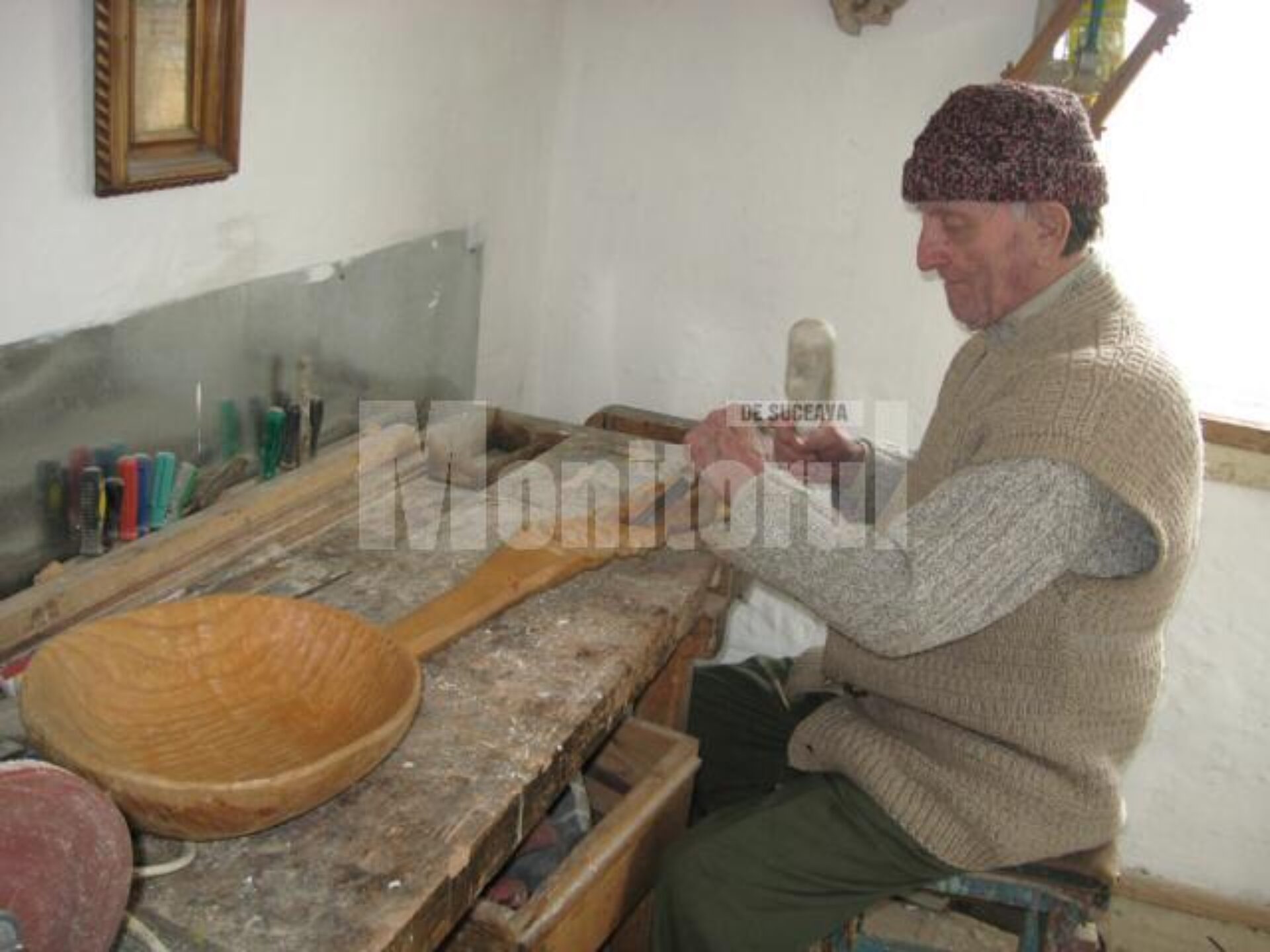 Atelierul de lucru se află în spatele casei. Un banc de tâmplărie, lăzi, dulapuri și polițe cu scule, de la fierăstraie, bărdițe și topoare, la dălți de diferite tipuri.