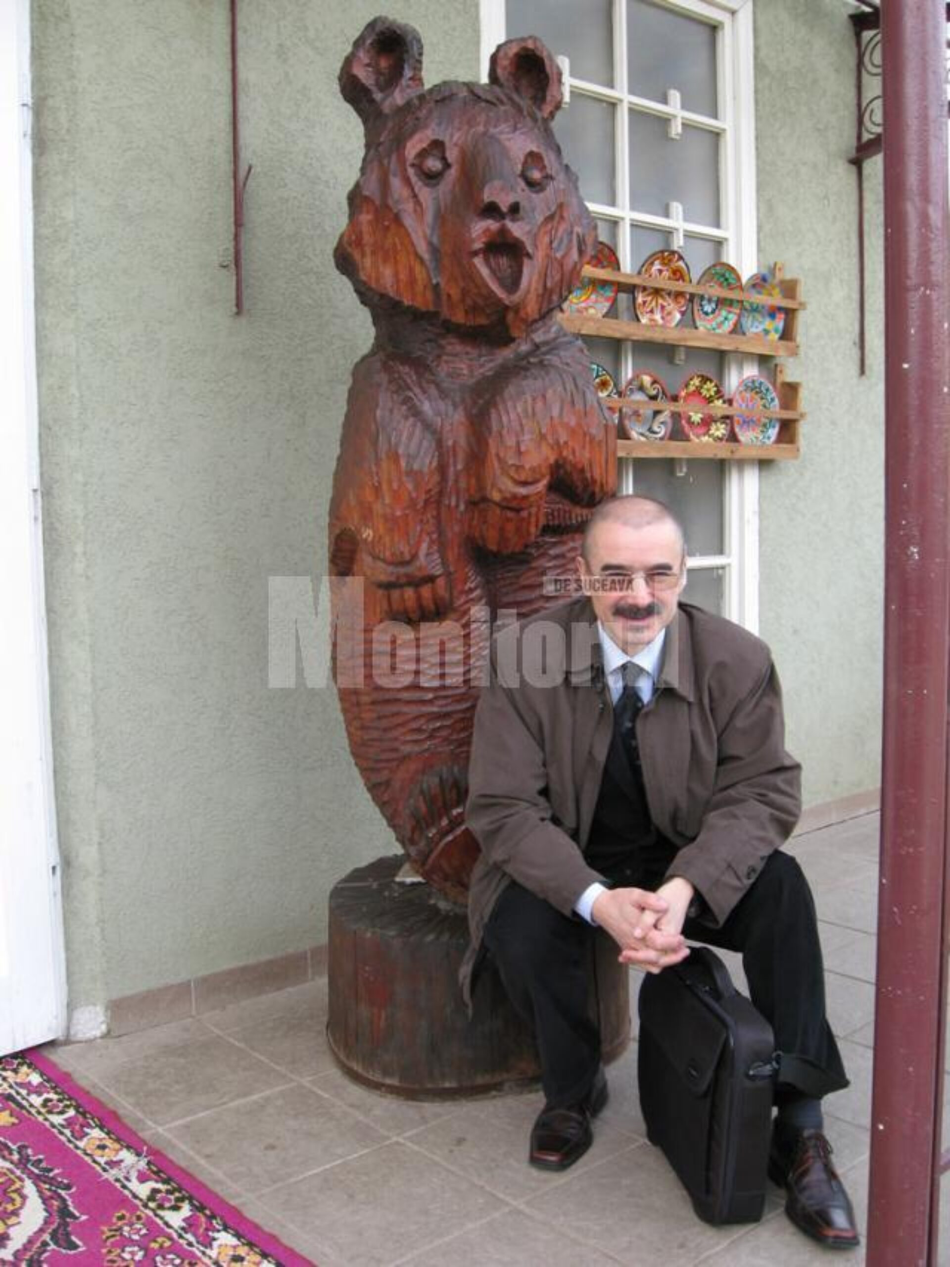 Primul și cel mai vizibil exponat este ursul în mărime naturală, sculptat în lemn de pin negru, care străjuiește ușa de intrare.