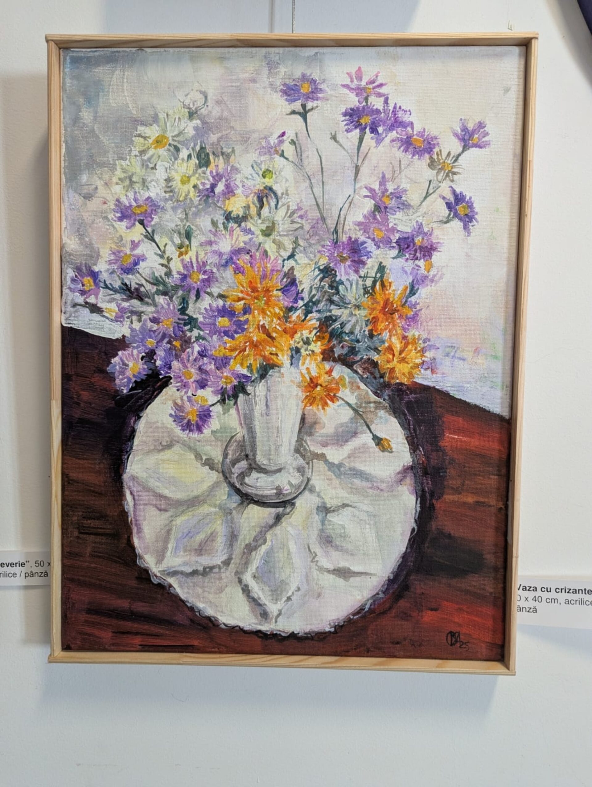 Artista ieșeană Marcela Dascălu propune publicului sucevean o incursiune delicată în universul memoriei afective, filtrată prin sensibilitatea florală care îi definește creația. Florile sale nu sunt simple studii botanice, ci adevărate portrete emoționale, încărcate de lumină, fragilitate și reverie.