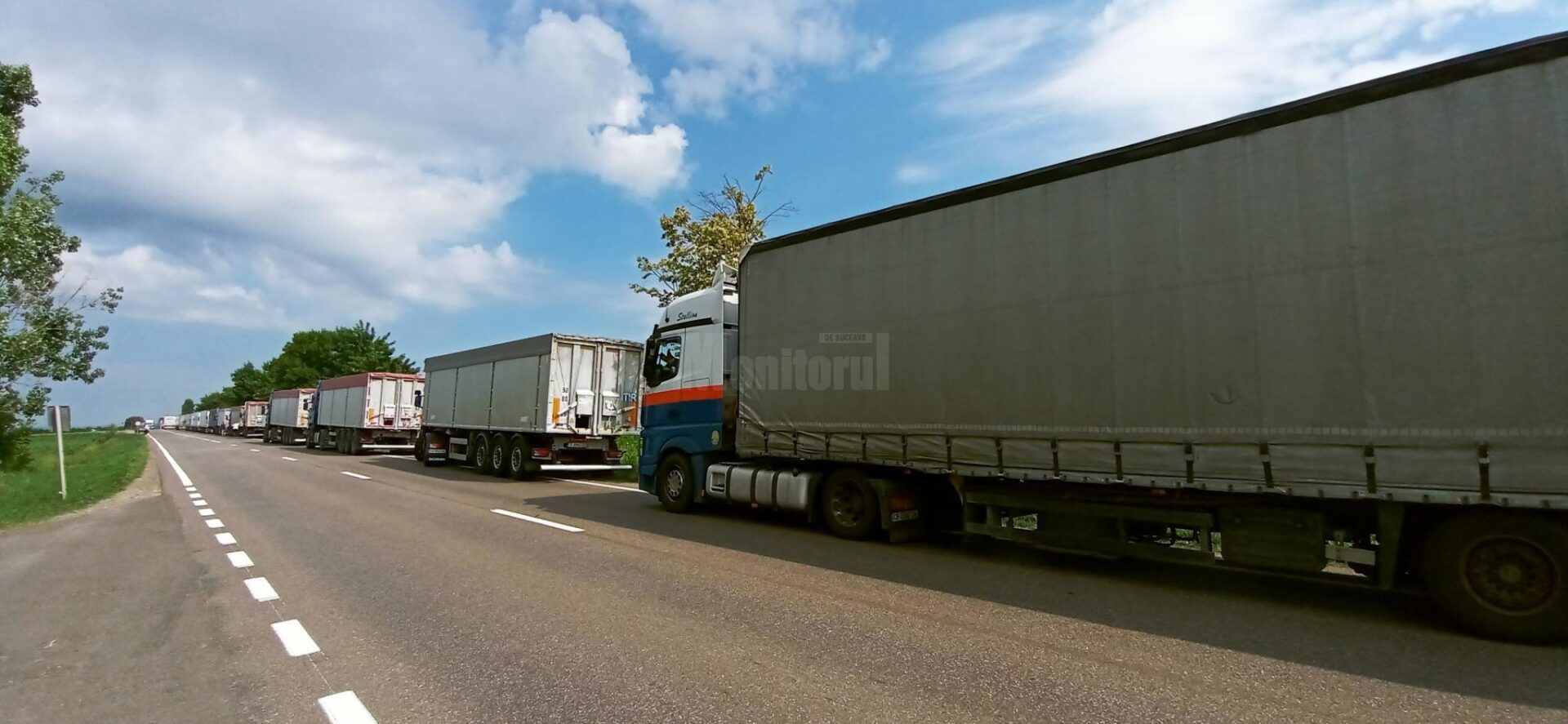 Drum blocat între Bălcăuți și Siret, duminică seara, de șoferi turci și ucraineni, supărați de prioritizarea transporturilor umanitare