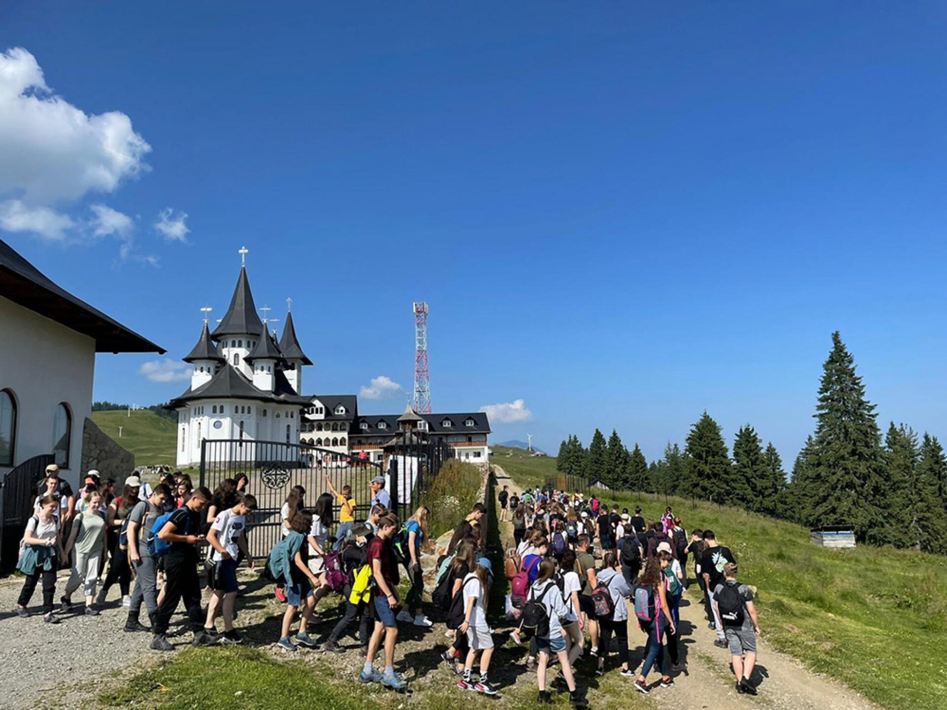 După ce s-au închinat și s-au rugat cântând în biserica Mănăstirii Prislop (Maramureș), tinerii au luat-o la pas către înălțimile Rodnei.
