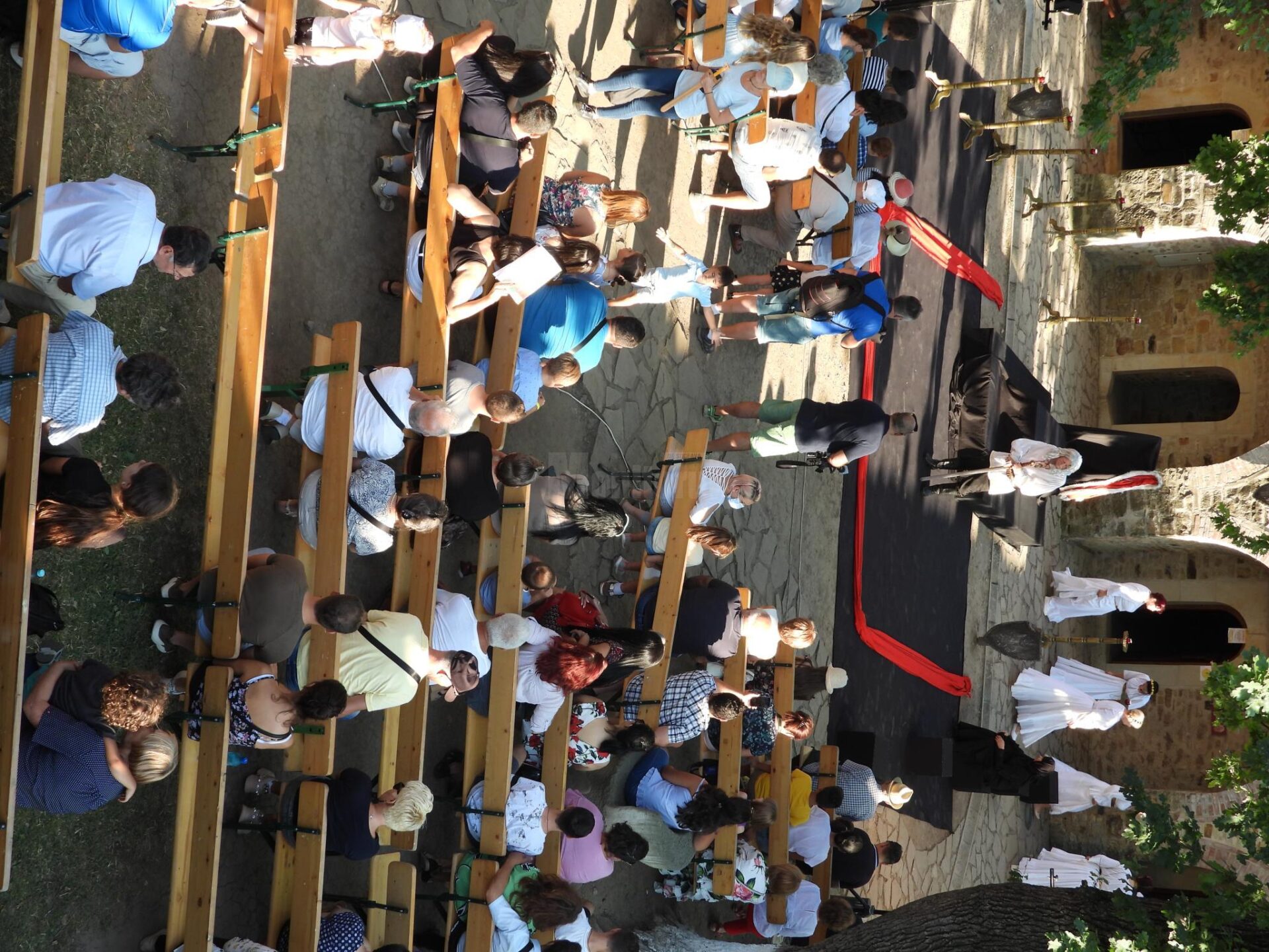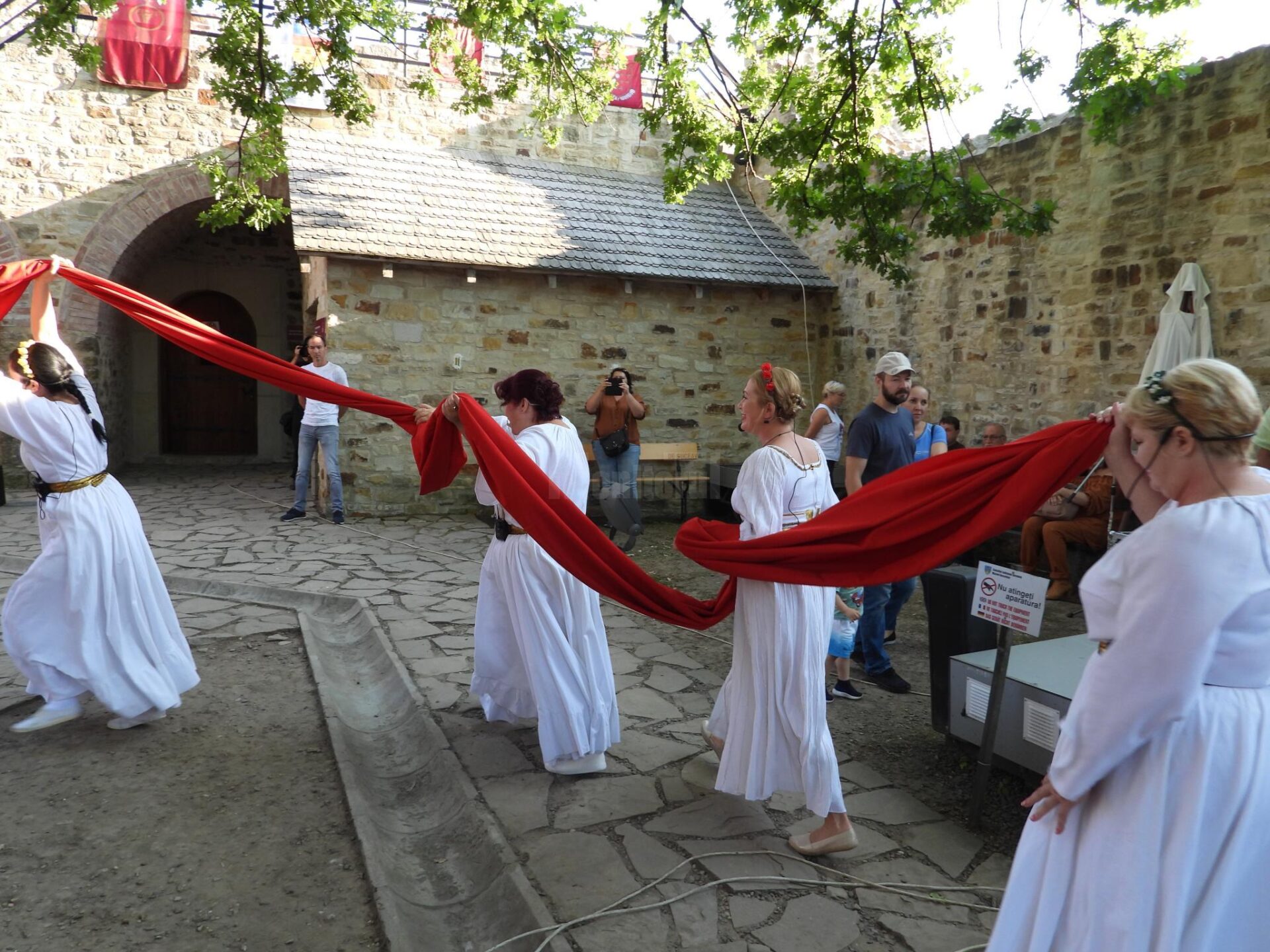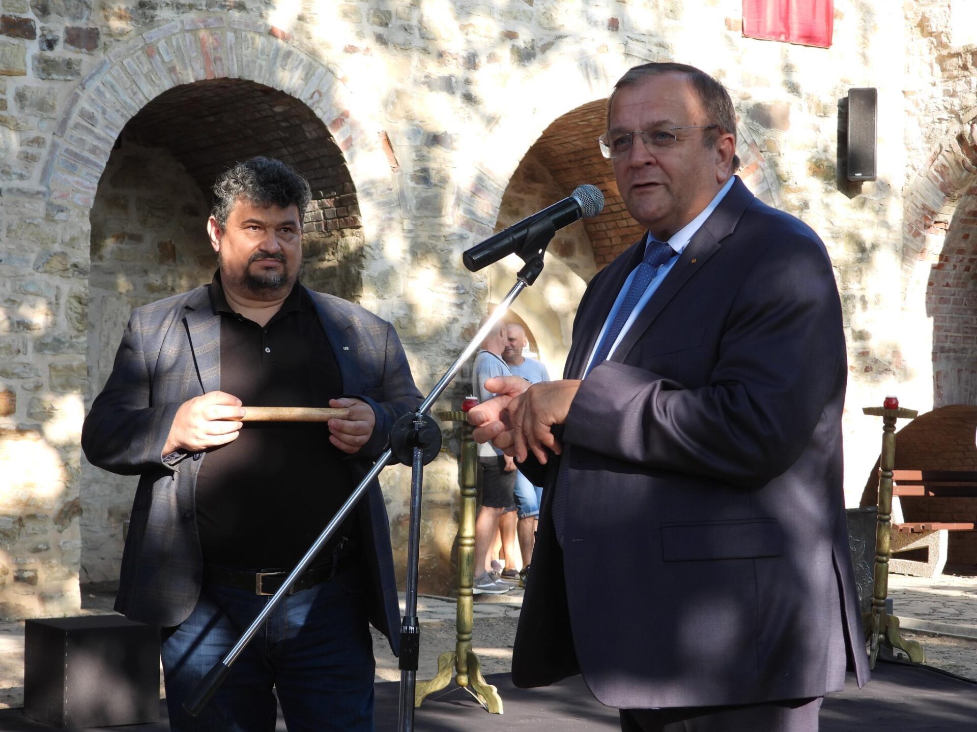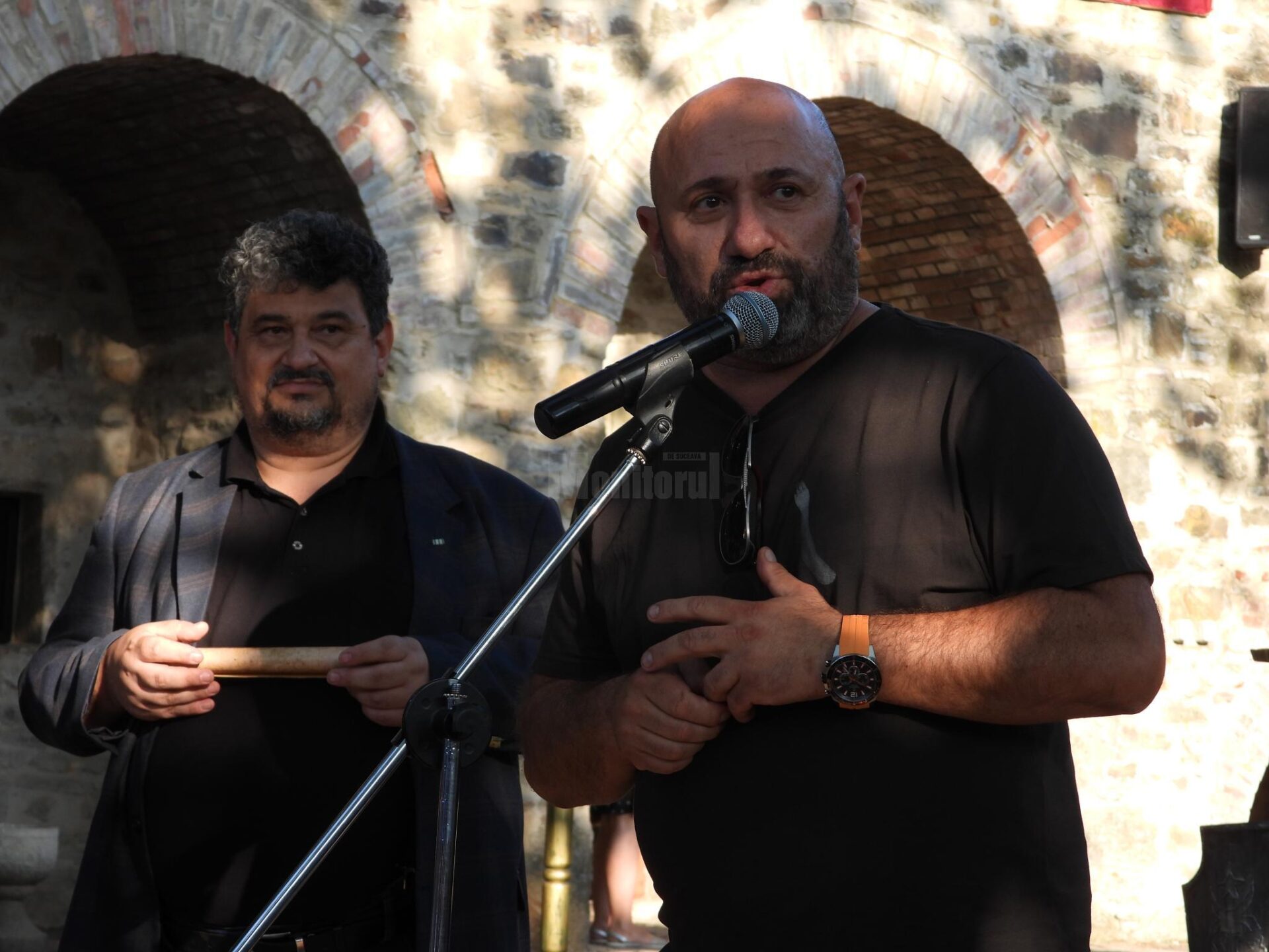 “Deschidem în pandemie a 14-a ediție a festivalului medieval din Cetatea de Scaun a Sucevei. Vă salut cu drag și cu respect pe toți. Văd turiști, lume din diaspora, localnicii. Anul trecut așa au fost vremurile, nu s-a putut organiza. Încercăm o variantă un pic mai redusă și ne cerem scuze. Puteam să o facem și mai dezvoltată, dar restricțiile ne-au obligat să fim prudenți. Cu toate acestea ne dezmorțim și vreau să le mulțumesc artiștilor care au venit din mai multe zone din țară și din străinătate la acest festival de la Suceava.