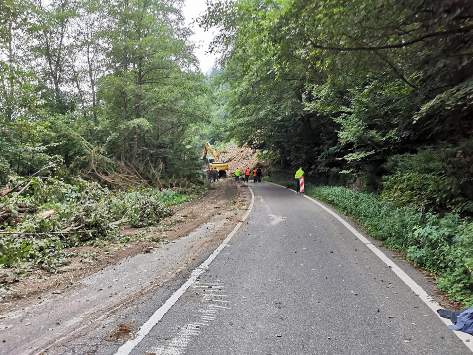 Lucrările de curățare a carosabilului au început abia marți dimineață, pe lumină, când s-a putut lucra în condiții de minimă siguranță. Problema este că alunecarea continuă, pe măsură ce suprafața carosabilă este curățată. Apoi, nu se poate da drumul la circulație decât în condiții de siguranță, după ce versantul se stabilizează. Soluția cu amplasarea de plase de siguranță era pregătită pentru protecția drumului.