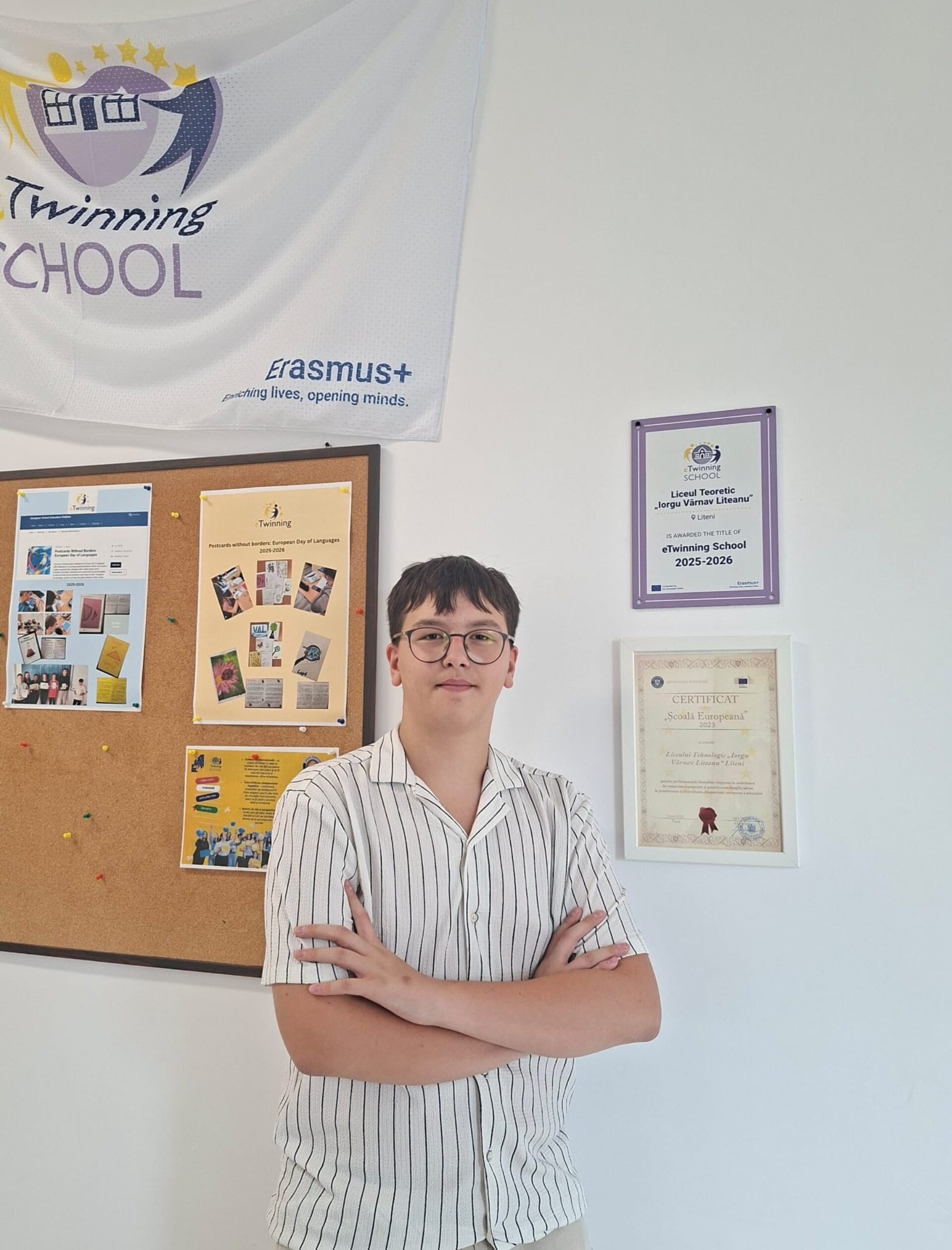 Performanța sa nu se oprește aici. Elevul a demonstrat o remarcabilă versatilitate artistică, obținând Locul I la concursul cu participare internațională „Acronimul meu… IARNA”, secțiunea artistico-plastică, ediția noiembrie–ianuarie 2026. Această distincție evidențiază creativitatea, imaginația și capacitatea de a transpune emoții și idei în forme vizuale expresive.