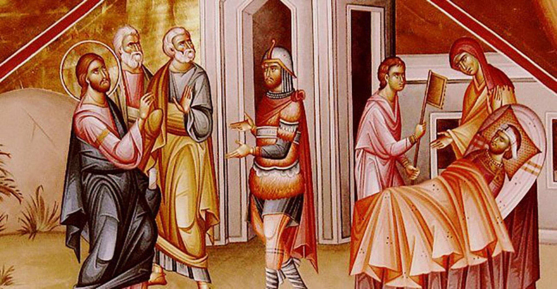 „În vremea aceea, pe când Iisus intra în Capernaum, s-a apropiat de El un sutaș, rugându-L și zicând: Doamne, sluga mea zace în casă, slăbănog, chinuindu-se cumplit. Și i-a zis Iisus: Venind, îl voi vindeca. Dar sutașul, răspunzând, I-a zis: Doamne, nu sunt vrednic să intri sub acoperișul meu, ci numai spune un cuvânt și se va vindeca sluga mea. Că și eu sunt om sub stăpânirea altora și am sub mine ostași și-i spun acestuia: Du-te, și se duce; și celuilalt: Vino, și vine; și slugii mele: Fă aceasta, și face. Auzind, Iisus S-a minunat și a zis celor ce veneau după El: Adevărat grăiesc vouă: Nici în Israel n-am găsit atâta credință. Și zic vouă că mulți de la răsărit și de la apus vor veni și vor sta la masă cu Avraam, cu Isaac și cu Iacov în Împărăția cerurilor. Iar fiii Împărăției vor fi aruncați în întunericul cel mai din afară; acolo va fi plângerea și scrâșnirea dinților. Și a zis Iisus sutașului: Du-te, fie ție după cum ai crezut. Și s-a însănătoșit sluga lui în ceasul acela.” (Matei 8, 5-13)
