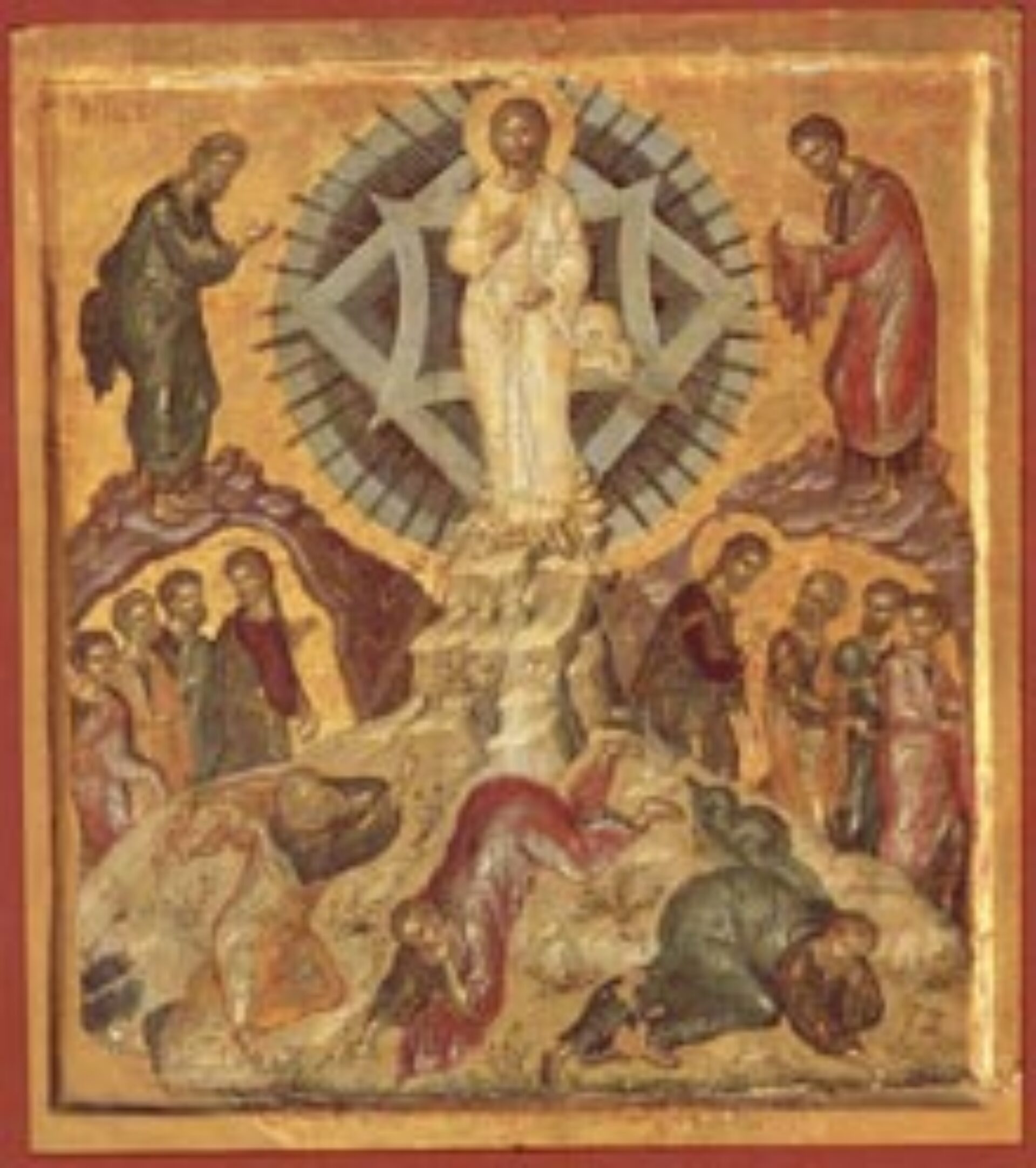 Acolo, cei trei apostoli, fiind obosiți de călătoria muntelui – că muntele este mare, lung și înalt -, când au ajuns cu Mântuitorul sus, de mare oboseală, au stat jos și s-au odihnit până au adormit. Apoi, trezindu-se ei, prin iconomia lui Dumnezeu, Mântuitorul S-a schimbat la față înaintea lor. Hainele Lui s-au făcut ca lumina, fața Lui strălucea mai mult decât soarele, iar ei, văzând aceasta, s-au spăimântat foarte și au văzut că stătea în văzduh și vorbea cu doi mari prooroci, cu Moise și cu Ilie.
