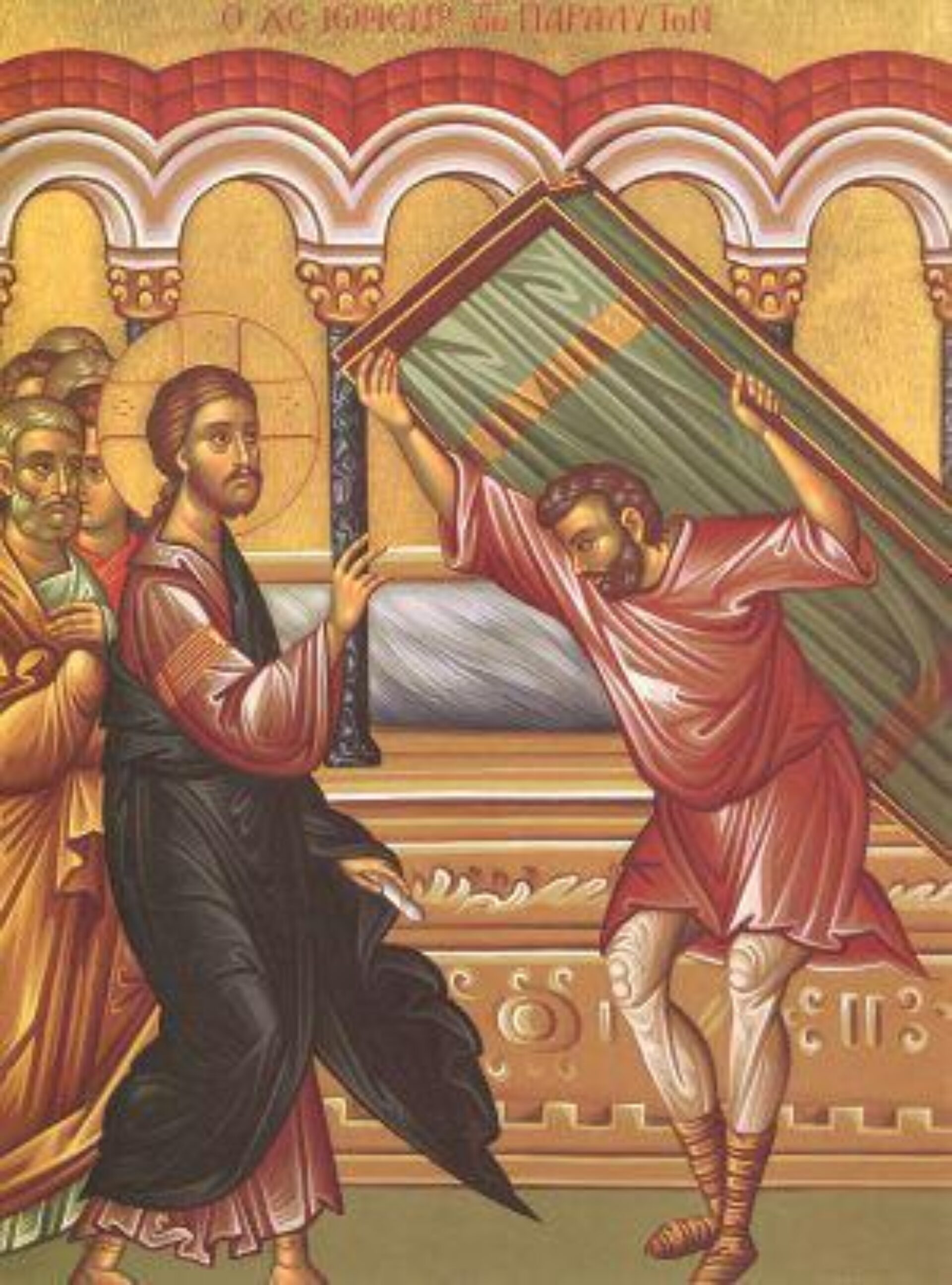 În această duminică este istorisită de către Sfântul Evanghelist Ioan vindecarea minunată a unui om care de 38 de ani se afla în imposibilitatea de a trăi pe propriile picioare: un „slăbănog”. Acesta se află în Ierusalim, la o „ scăldătoare” (o piscină) cu cinci „pridvoare” (bazine) despre apa căreia se cunoștea că are proprietăți tămăduitoare: în fiecare zi se vindecă un bolnav, anume cel care avea posibilitatea să intre primul în apă după ce un înger al Domnului „tulbură apa”. Pentru a beneficia de un asemenea moment, bolnavii de acolo „orbi, șchiopi, uscați” aveau însoțitori care-i ajutau să intre în apă. Unul dintre ei se vindecă, astfel. Bolnavul vindecat de Hristos, neavând pe nimeni care să-l ajute, nu reușea de 38 de ani să intre primul în apa tămăduitoare.