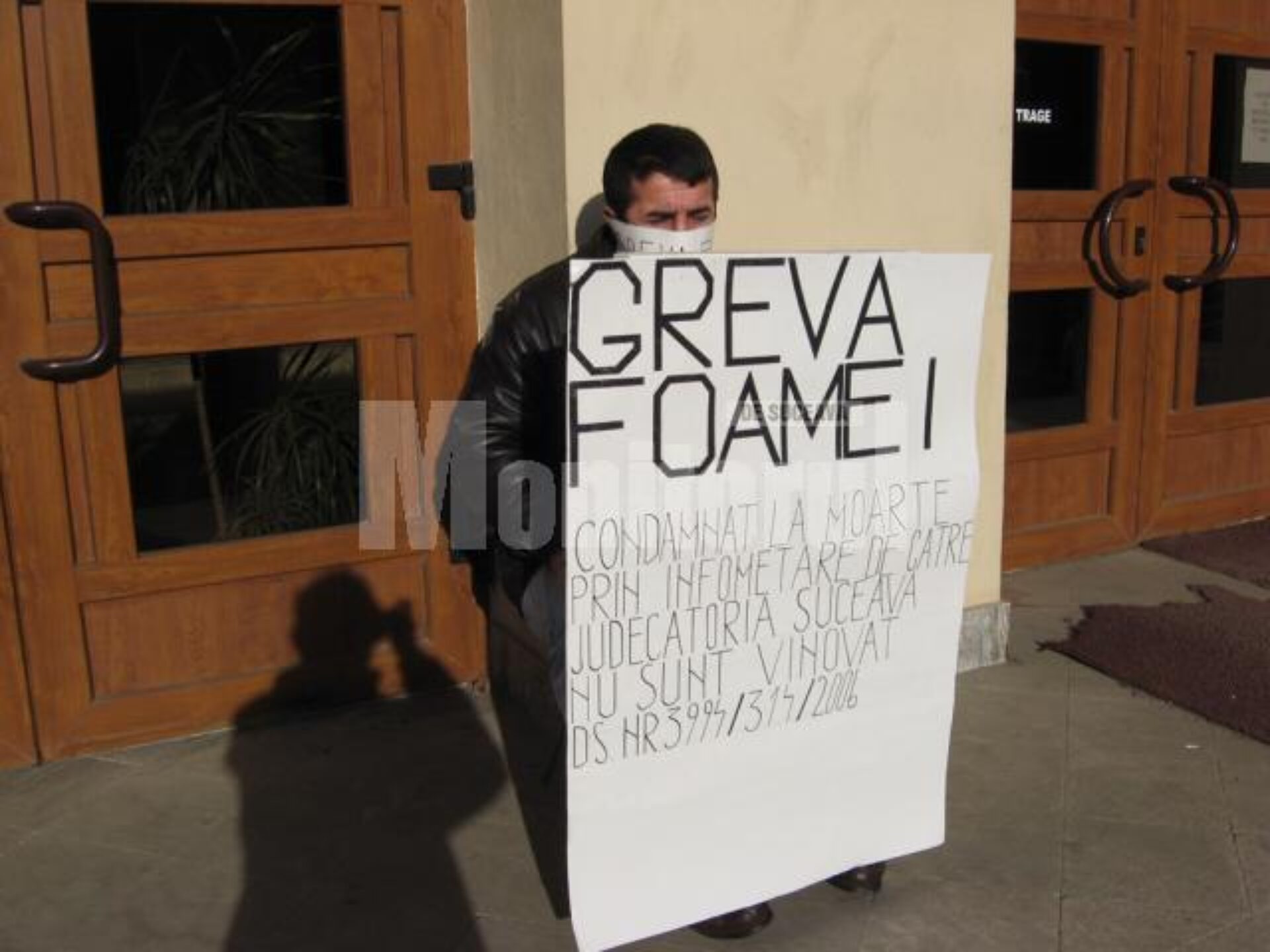După ce, pe perioada arestului preventiv, a refuzat să se alimenteze, anul trecut acesta a făcut greva foamei în fața Palatului de Justiție Suceava. În varianta acestuia, totul este o înscenare, pusă la cale de polițiști, care au constrâns fetele să-l acuze pe el.