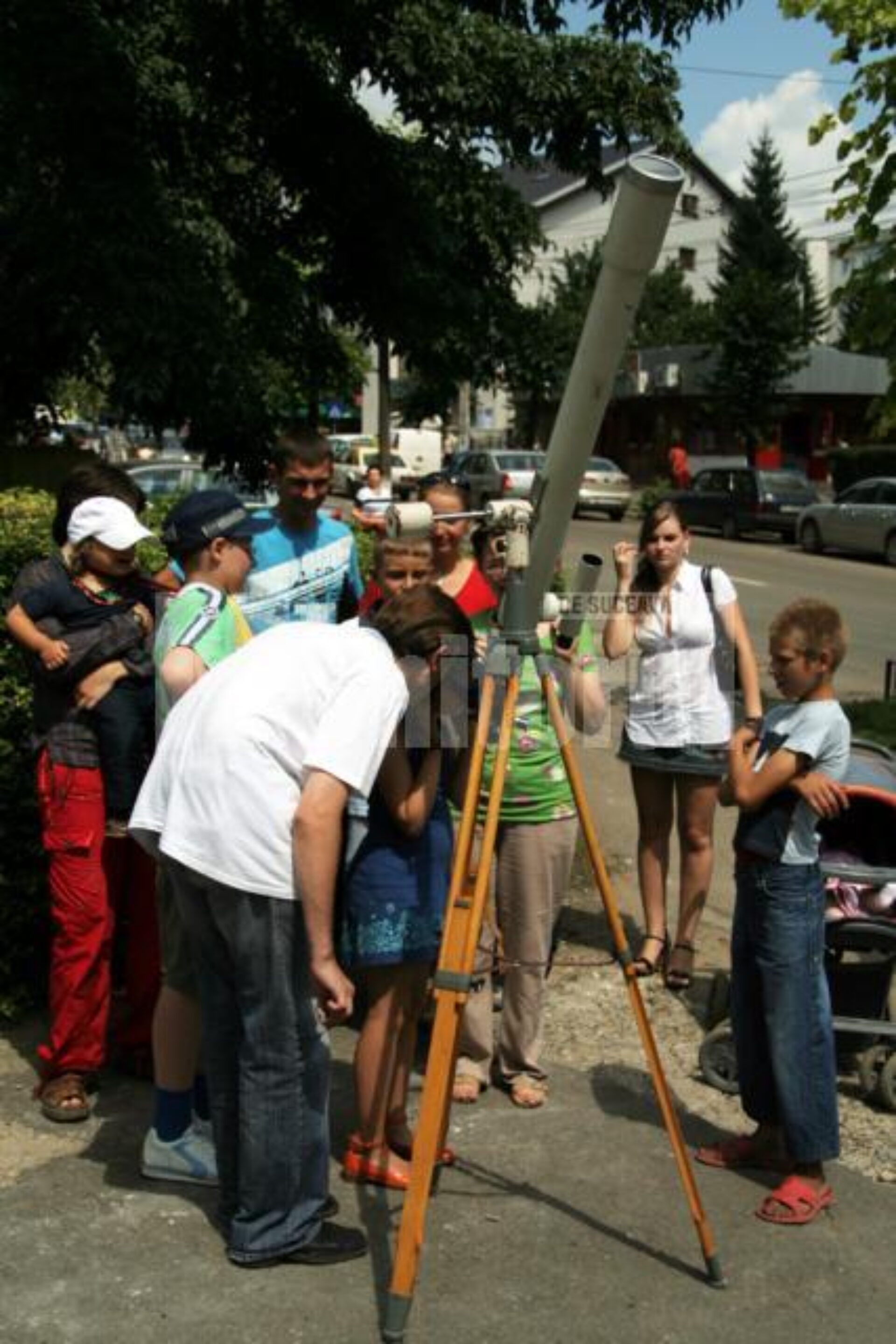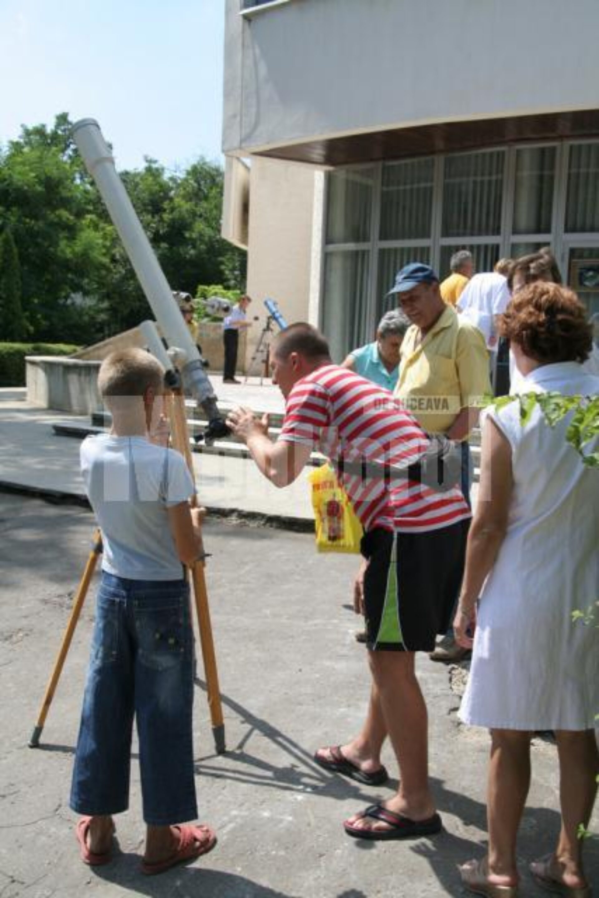 Zeci de suceveni au venit ieri pe platoul Observatorului Astronomic pentru a urmări eclipsa parțială de soare. Fenomenul s-a produs ieri, în jurul orelor 12:00, iar momentul maxim de vizibilitate a eclipsei solare a avut loc o oră mai târziu, când discul soarelui a fost acoperit de lună în proporție de 27%.