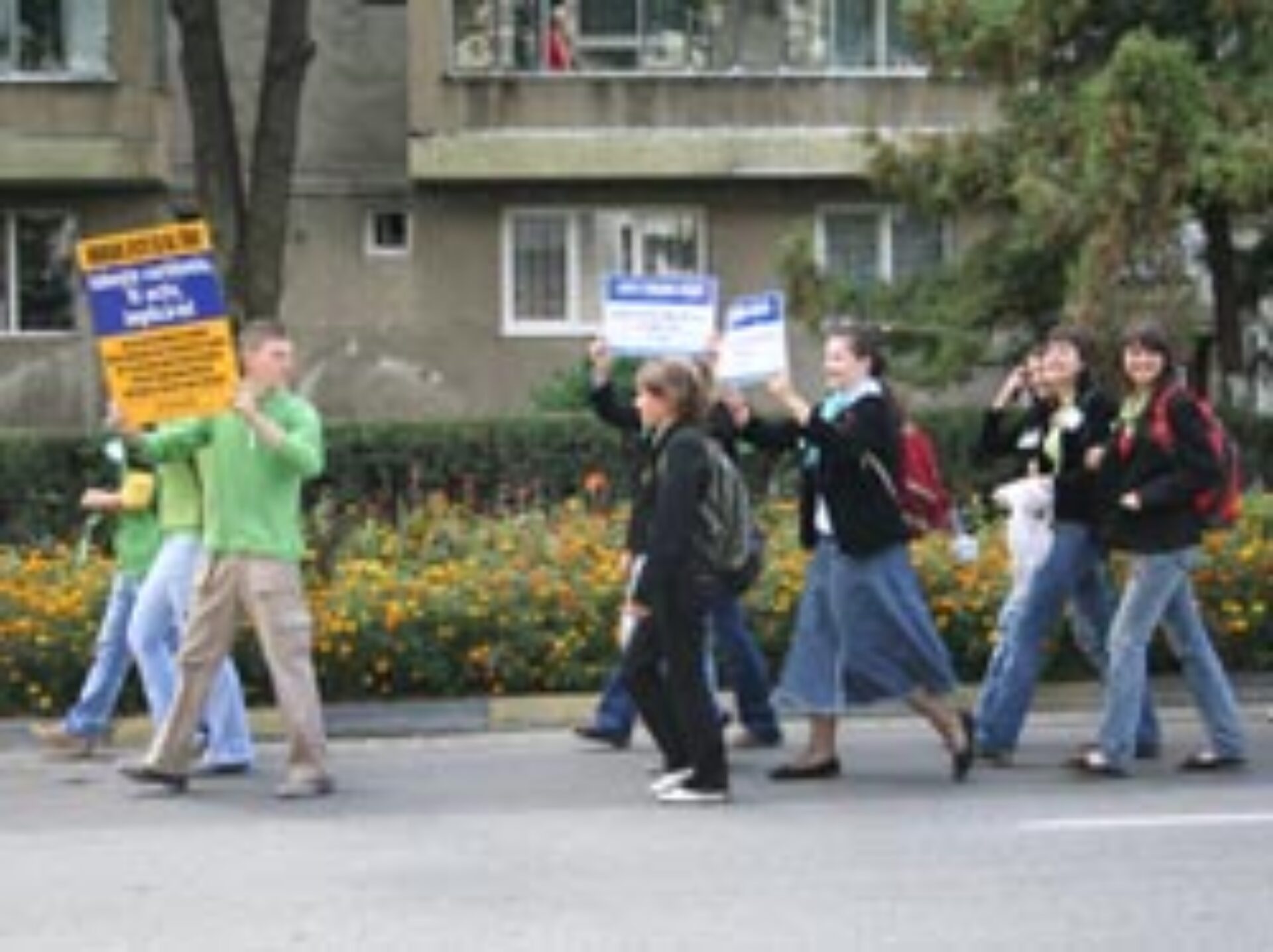 Cu pancarte în mâini și lozinci de genul „lasă-ți mașina acasă”, elevii ecologiști au mărșăluind de la școlile în care învață până în centrul orașului. Aceștia au dorit să convingă cetățenii municipiului să renunțe măcar o zi pe an la transportul poluant și să apeleze la mijloace de transport ecologice precum bicicleta.