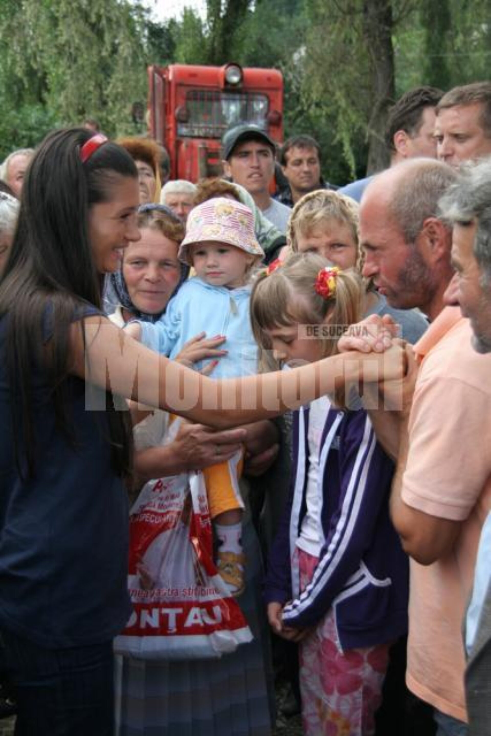 „Vă mulțumim și să vă trăiască tăticul și partidul”, i-a spus o localnică mezinei președintelui, după ce a sărutat-o de mai multe ori pe ambii obraji.