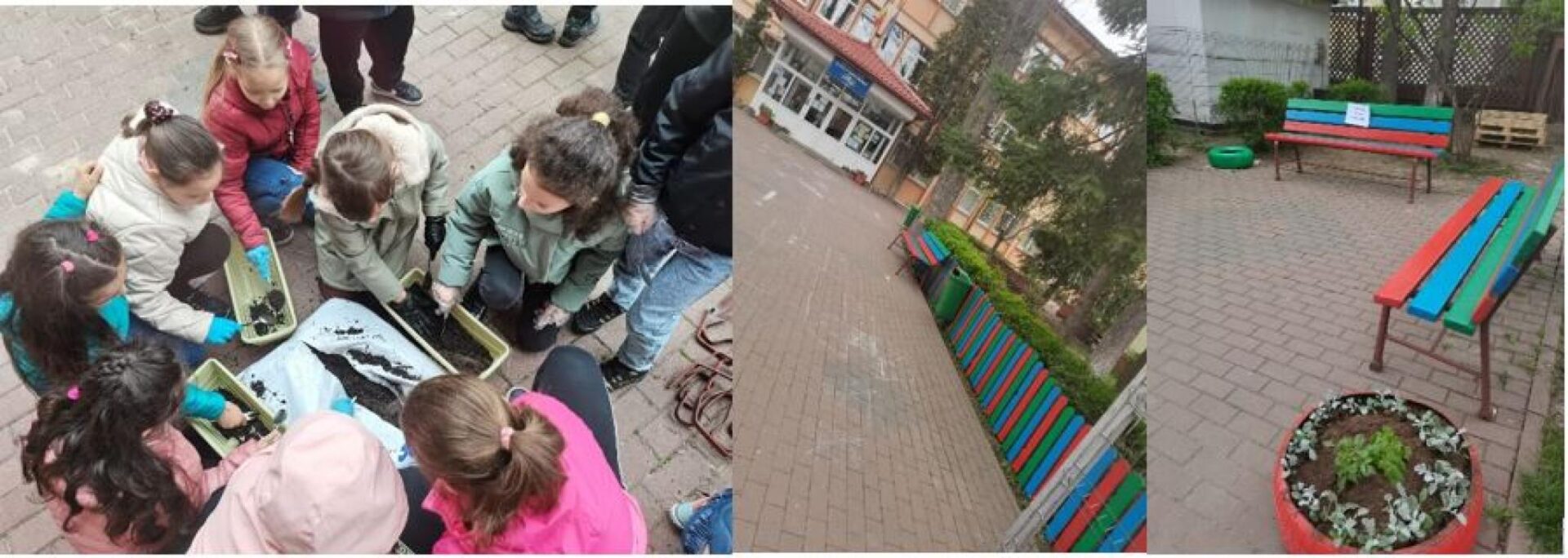 Elevi din clasele a II-a și a III-a, coordonați de către cadre didactice, au desfășurat acțiuni de ecologizare și igienizare a spațiului, au vopsit băncile și gardul din curte, au plantat plantele puse la dispoziție de către serviciul Spații Verzi din cadrul Primăriei Suceava.