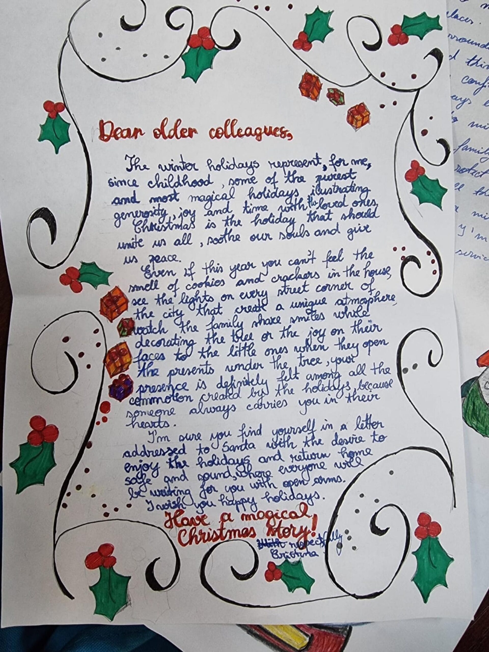 Elevii Colegiului Național Militar „Ștefan cel Mare” Câmpulung Moldovenesc au scris, în apropierea sărbătorilor de iarnă, scrisori pentru militarii străini detașați în misiuni de securitate în zona Mării Negre.