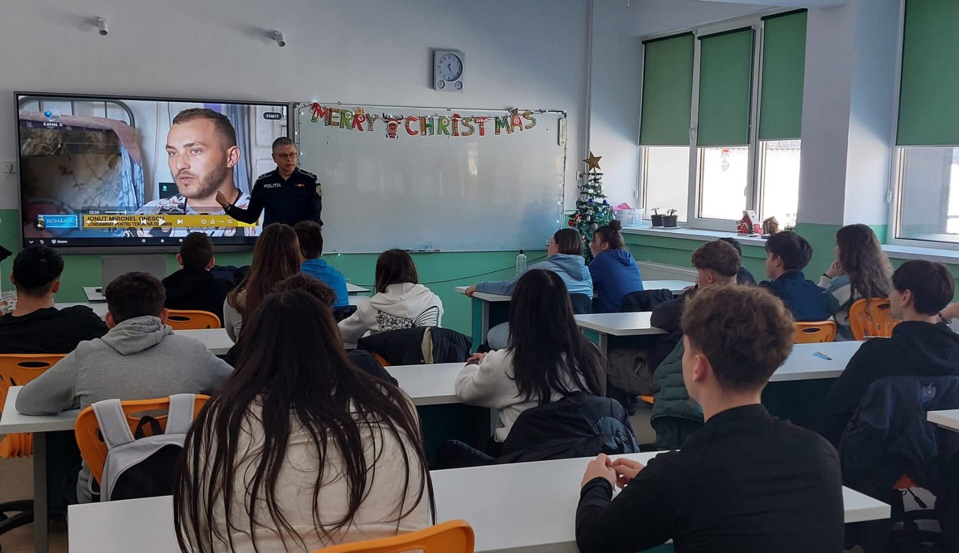 Polițiștii au mers și la cursuri, unde au instruit 120 elevi și cadre didactice de la Colegiul Tehnic de Industrie Alimentară Suceava, pe următoarele teme: prevenirea portului fără drept de obiecte periculoase, vânzarea și consumul băuturilor/alcoolice/energizante de către minori, vânzarea și consumul produselor din tutun precum și cu privire la răspunderea penală și contravențională, etc.