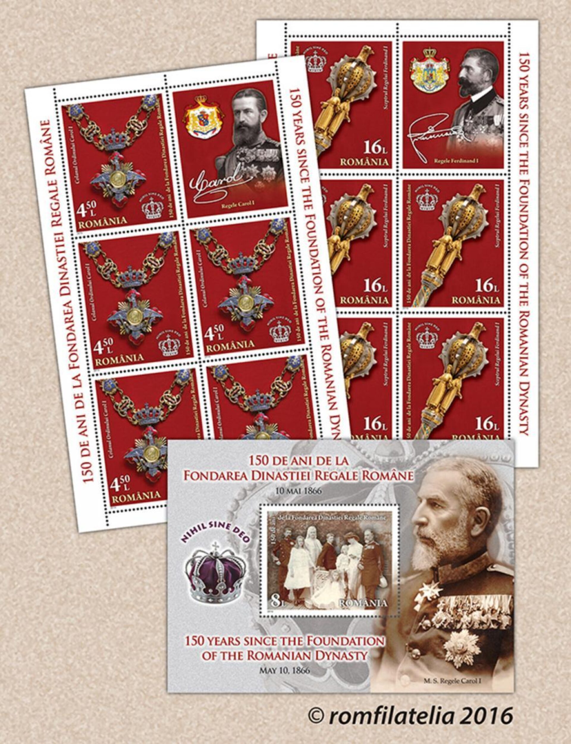 În acest context, Romfilatelia a introdus în circulație filatelică, începând cu data de 10 mai a.c.,emisiunea tematică „150 de ani de la fondarea Dinastiei Regale Române”, care ilustrează simbolurile și primele trei generații ale Familiei Regale a României.