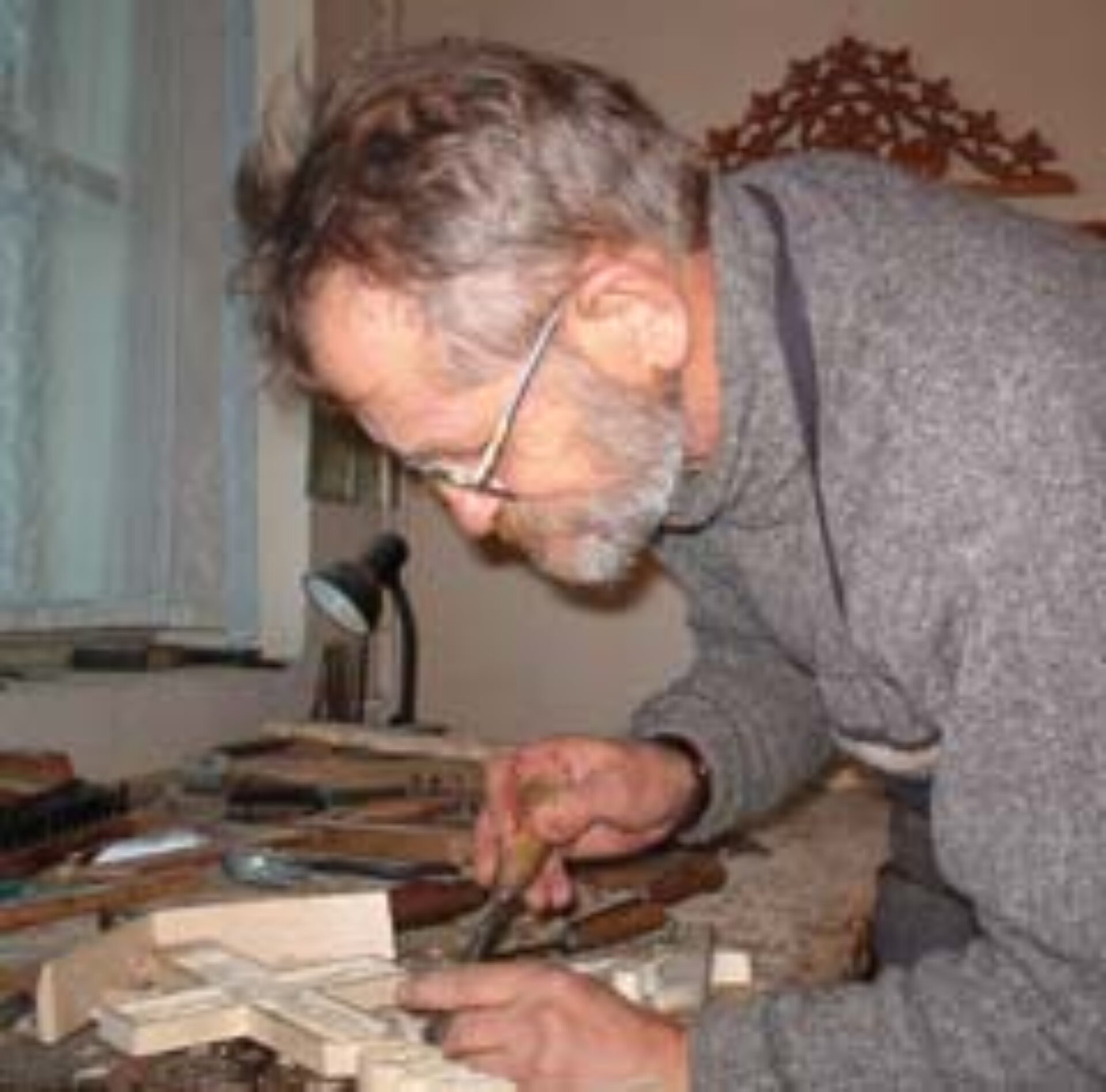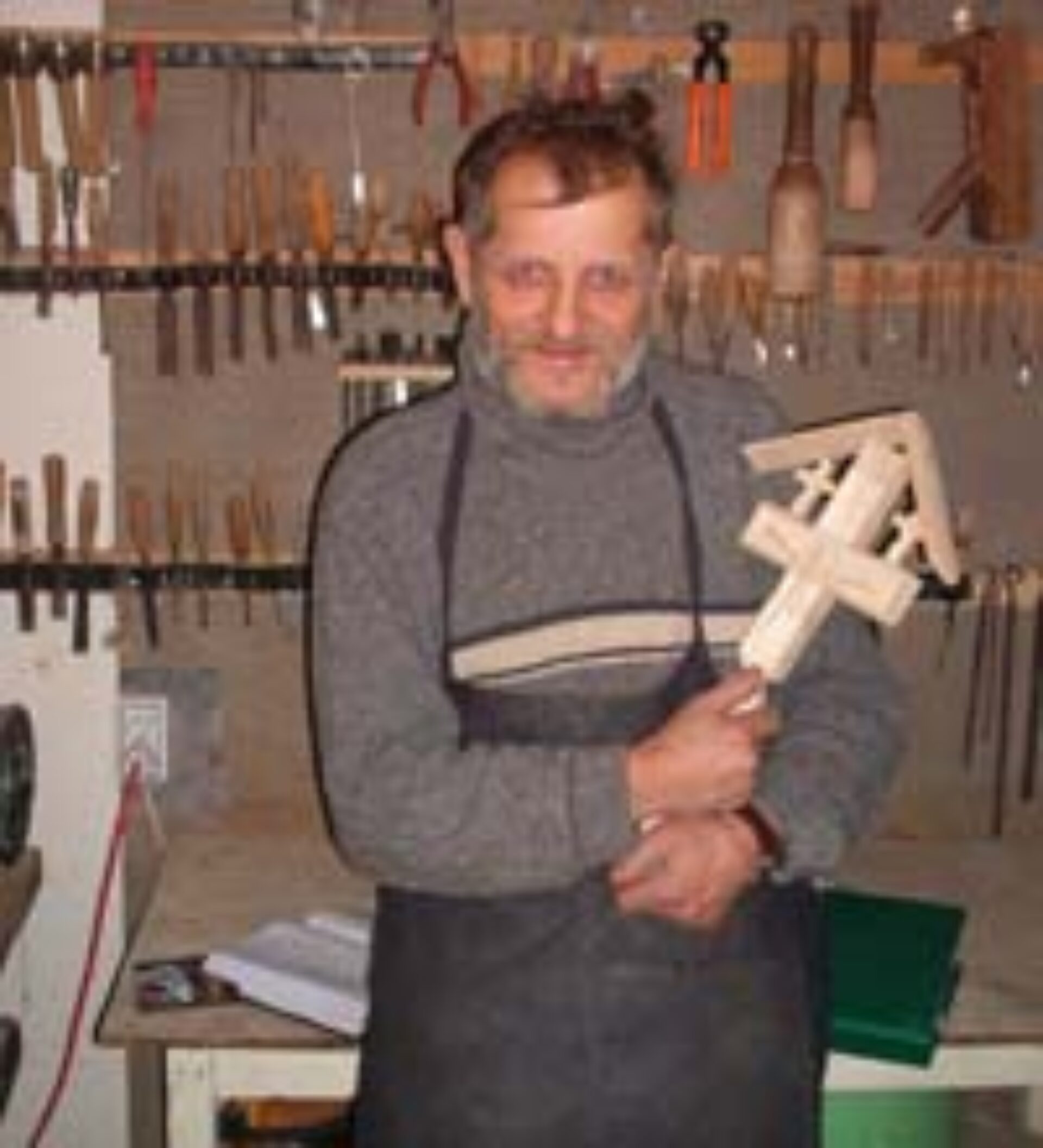 – Inițial n-am făcut obiecte de cult, am lucrat diverse peisaje, busturi, miniaturi, dar, așa cum v-am spus, pentru mine întîmplarea nu există. Acum vreo zece ani, pe cînd eram la IMIL, nu prea aveam de lucru. Era în lucru Biserica Sf. Ilie și, ca să nu stau degeaba acasă, m-am dus la părintele Fediuc și l-am rugat să mă ia și pe mine la lucru. “Poți să pui niște PAL în interiorul bisericii?”, m-a întrebat părintele. I-am spus că da, pentru că la IMIL lucram și parte de lemn. Am pus pe interior aproape tot PAL-ul pe care l-a pictat apoi pictorul Gavrilean. Am văzut că nu erau porți și i-am spus părintelui c-aș putea să fac niște porți sculptate deși nu mai lucrasem niciodată așa ceva. Nu mi-a răspus nimic atunci așa că mi-am văzut de treaba mea dar într-o zi a venit la mine și m-a întrebat dacă pot să fac un iconostas. De ce-am spus că pot, nici acuma nu știu! N-am mai făcut niciodată dar am simțit că pot s-o duc la capăt. Părintele a procurat materiale, mi-a dat în spate la Protopopiat o cămăruță și m-am apucat de lucru. În trei luni am făcut iconostasul. Mi-ați pus întrebarea cum am ajuns să fac obiecte de cult. Păi, preotul n-a văzut nici o lucrare de-a mea dar a avut încredere în mine. Puteam să stric atîta material, cînd te apuci de un iconostas e vorba de 4 – 5 metri cubi de lemn…După ce l-am terminat l-am întrebat: “Părinte, mi-ai dat să fac lucrarea asta, cum de-ai avut curajul, nu ți-a fost frică?”. Știi ce mi-a zis? Doar atît: “Vezi c-am avut!”.