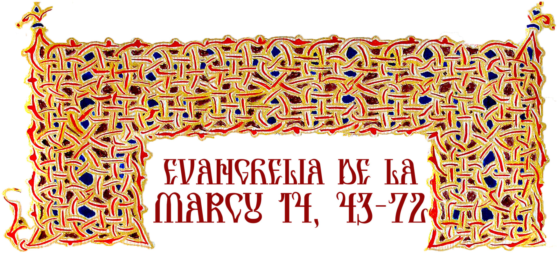 În vremea aceea Iuda Iscarioteanul, unul dintre cei doisprezece, s-a dus la arhierei ca să-L vândă pe Iisus. Și, auzind ei, s-au bucurat și au făgăduit să-i dea bani. De aceea el căuta cum să-L dea lor la timpul potrivit. Iar în ziua cea dintâi a Azimelor, când jertfeau Paștile, ucenicii Lui L-au întrebat: Unde voiești să mergem să pregătim, ca să mănânci Paștile? Și a trimis doi dintre ucenicii Lui, zicându-le: Mergeți în cetate și vă va întâmpina un om ducând un ulcior cu apă; mergeți după el. Și unde va intra, spuneți stăpânului casei că învățătorul zice: Unde este încăperea în care pot să mănânc Paștile împreună cu ucenicii Mei? Iar el vă va arăta un foișor mare, așternut gata. Acolo să pregătiți pentru noi. Și au ieșit ucenicii și au venit în cetate și au găsit așa precum le-a spus și au pregătit Paștile. Și, făcându-se seară, a venit cu cei doisprezece. Pe când ședeau la masă și mâncau, Iisus a zis: Adevărat grăiesc vouă că unul dintre voi, care mănâncă împreună cu Mine, Mă va vinde. Atunci ei au început să se întristeze și să-I zică, unul câte unul: Nu cumva sunt eu? Iar El le-a zis: Unul dintre cei doisprezece, care întinge cu Mine în blid. Că Fiul Omului merge precum este scris despre El; dar vai de omul acela prin care este vândut Fiul Omului! Bine era de omul acela dacă nu s-ar fi născut. Și, mâncând ei, Iisus a luat pâinea și, binecuvântând, a frânt și le-a dat lor, zicând: Luați, mâncați, acesta este Trupul Meu. Apoi, luând paharul, mulțumind, le-a dat și au băut din el toți. Și a zis lor: Acesta este Sângele Meu, al Legii celei noi, care pentru mulți se varsă. Adevărat grăiesc vouă că de acum nu voi mai bea din rodul viței până în ziua aceea când îl voi bea nou în Împărăția lui Dumnezeu. Și, cântând laude, au ieșit la Muntele Măslinilor. Și le-a zis Iisus: Toți vă veți sminti, că scris este: «Bate-voi păstorul și se vor risipi oile»; dar, după învierea Mea, voi merge mai înainte de voi în Galileea. Iar Petru I-a zis: Chiar dacă toți se vor sminti întru Tine, totuși eu nu. Și i-a zis Iisus: Adevărat grăiesc ție că tu astăzi, în noaptea aceasta, mai înainte de a cânta de două ori cocoșul, de trei ori te vei lepăda de Mine. El însă spunea mai stăruitor: Și de-ar fi să mor cu Tine, nu Te voi tăgădui. Și tot așa ziceau toți. Și au venit la un loc al cărui nume este Ghetsimani, și acolo a zis către ucenicii Săi: Ședeți aici până ce Mă voi ruga. […]! E gata, a sosit ceasul. Iată, Fiul Omului este dat în mâinile păcătoșilor. Sculați-vă să mergem. Iată, cel ce M-a vândut s-a apropiat.