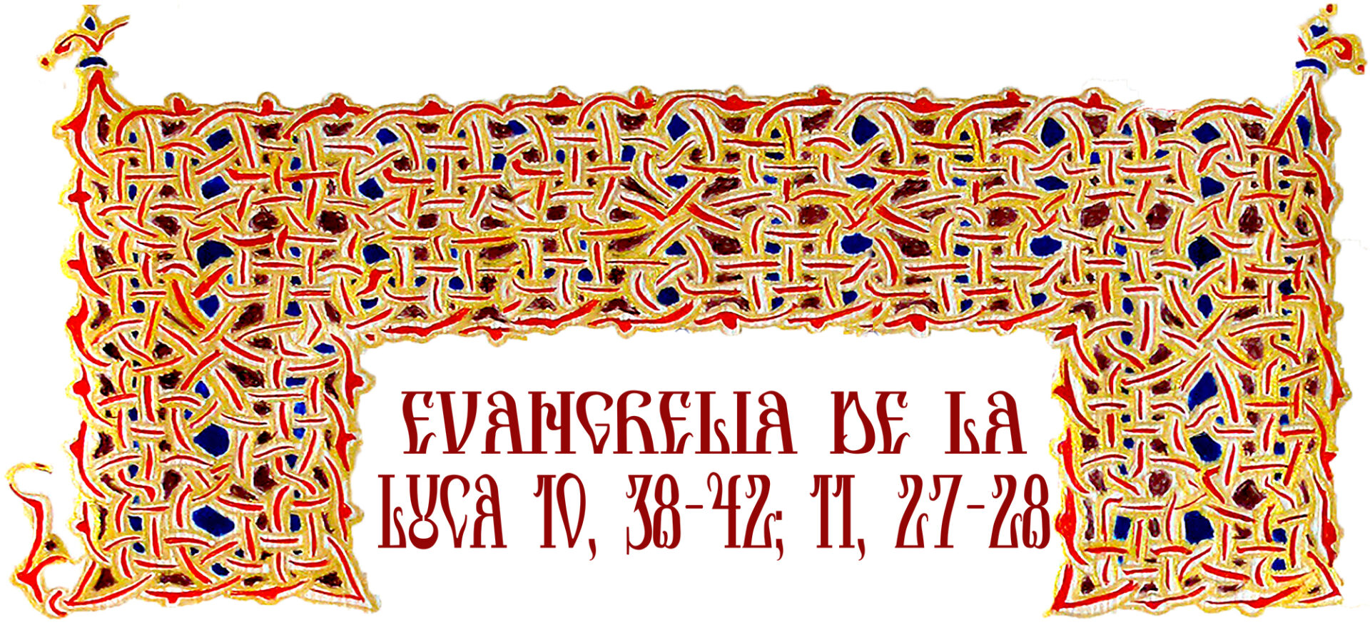 În vremea aceea a intrat Iisus într-un sat, iar o femeie, cu numele Marta, L-a primit în casa ei. Și ea avea o soră ce se numea Maria, care, așezându-se la picioarele Domnului, asculta cuvântul Lui. Iar Marta se silea cu multă slujire și, apropiindu-se, a zis: Doamne, oare nu socotești că sora mea m-a lăsat singură să slujesc? Spune-i, deci, să-mi ajute. Și răspunzând, Domnul i-a zis: Marto, Marto, te îngrijești și pentru multe te silești, dar un singur lucru trebuie: căci Maria partea cea bună și-a ales, care nu se va lua de la ea. Și, când zicea El acestea, o femeie din mulțime, ridicând glasul, I-a zis: Fericit este pântecele care Te-a purtat și fericit este pieptul la care ai supt! Iar El a zis: Așa este, dar fericiți sunt și cei ce ascultă cuvântul lui Dumnezeu și-l păzesc pe el.