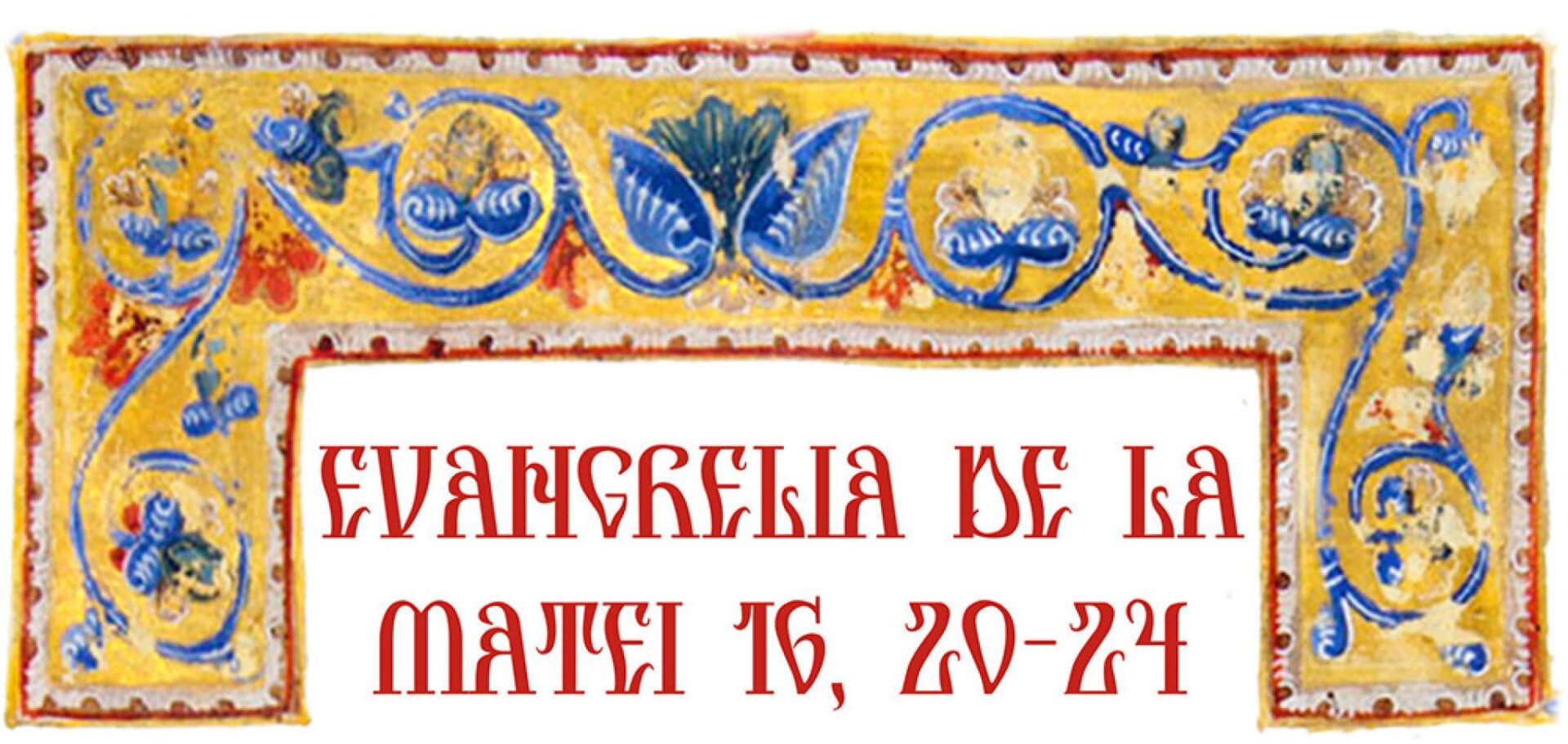 „Atunci Iisus a poruncit ucenicilor Lui să nu spună nimănui că El este Hristosul. De atunci a început Iisus să le arate ucenicilor Lui că El trebuie să meargă la Ierusalim și să pătimească multe de la bătrâni și de la arhierei și de la cărturari și să fie ucis; și a treia zi să învieze. Și Petru, luându-L la o parte, a început să-L dojenească, zicându-I: «Fie-Ți milă de Tine să nu Ți se întâmple Ție aceasta». Iar El, întorcându-Se, a zis lui Petru: «Mergi înapoia Mea, satano! Sminteală Îmi ești; că nu cugeți cele ale lui Dumnezeu, ci cele ale oamenilor!». Atunci Iisus a zis ucenicilor Săi: «Dacă vrea cineva să vină după Mine, să se lepede de sine, să-și ia crucea și să-Mi urmeze Mie».”
