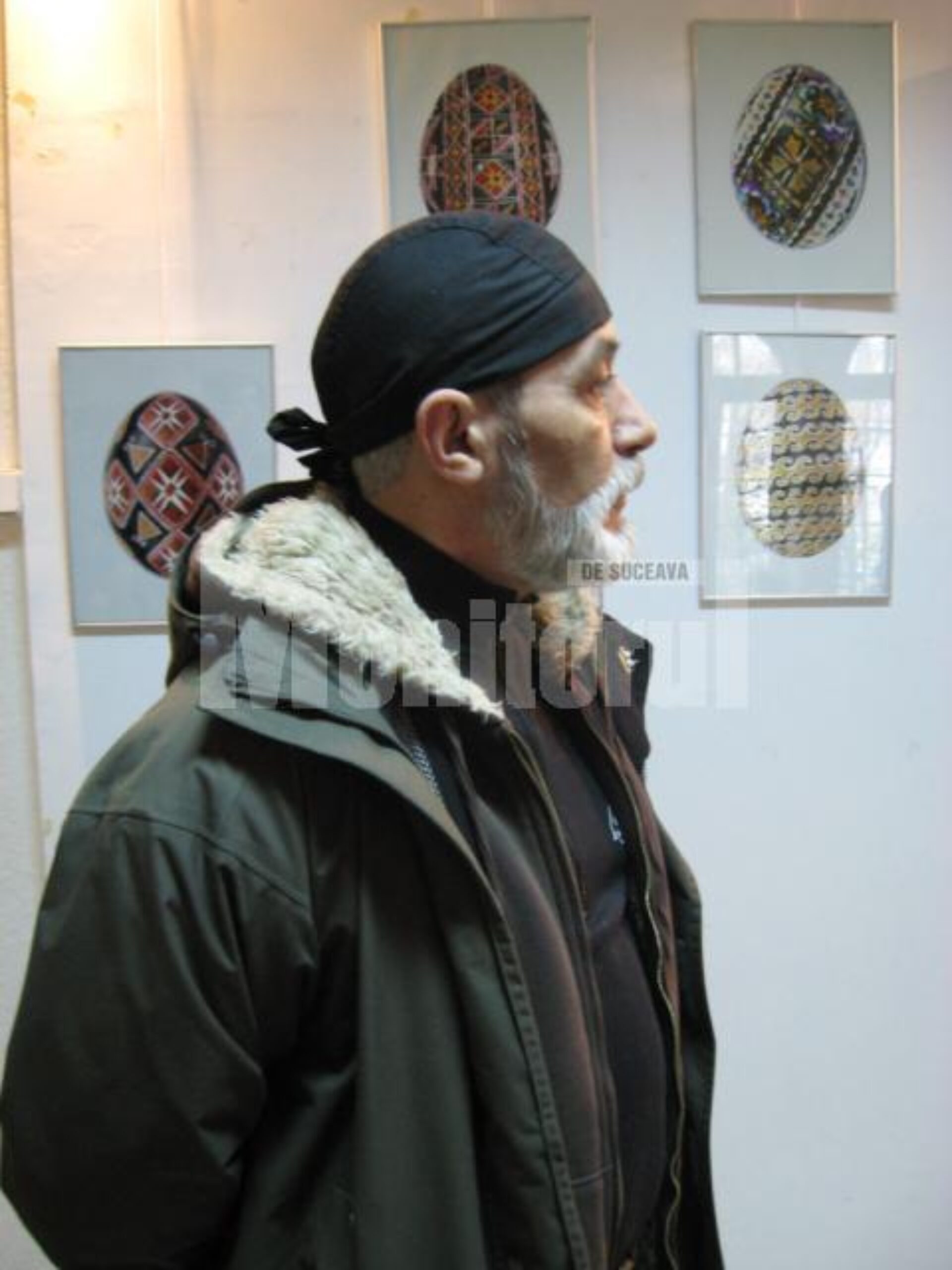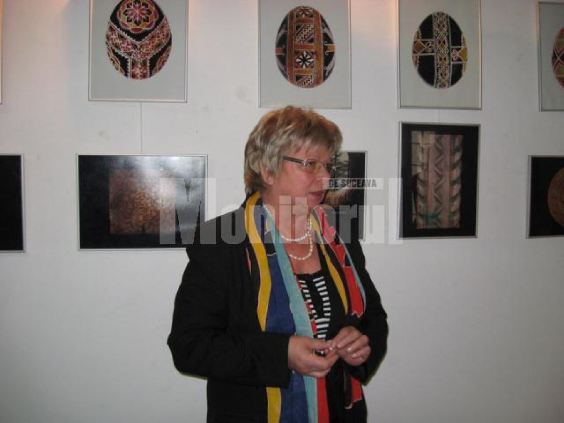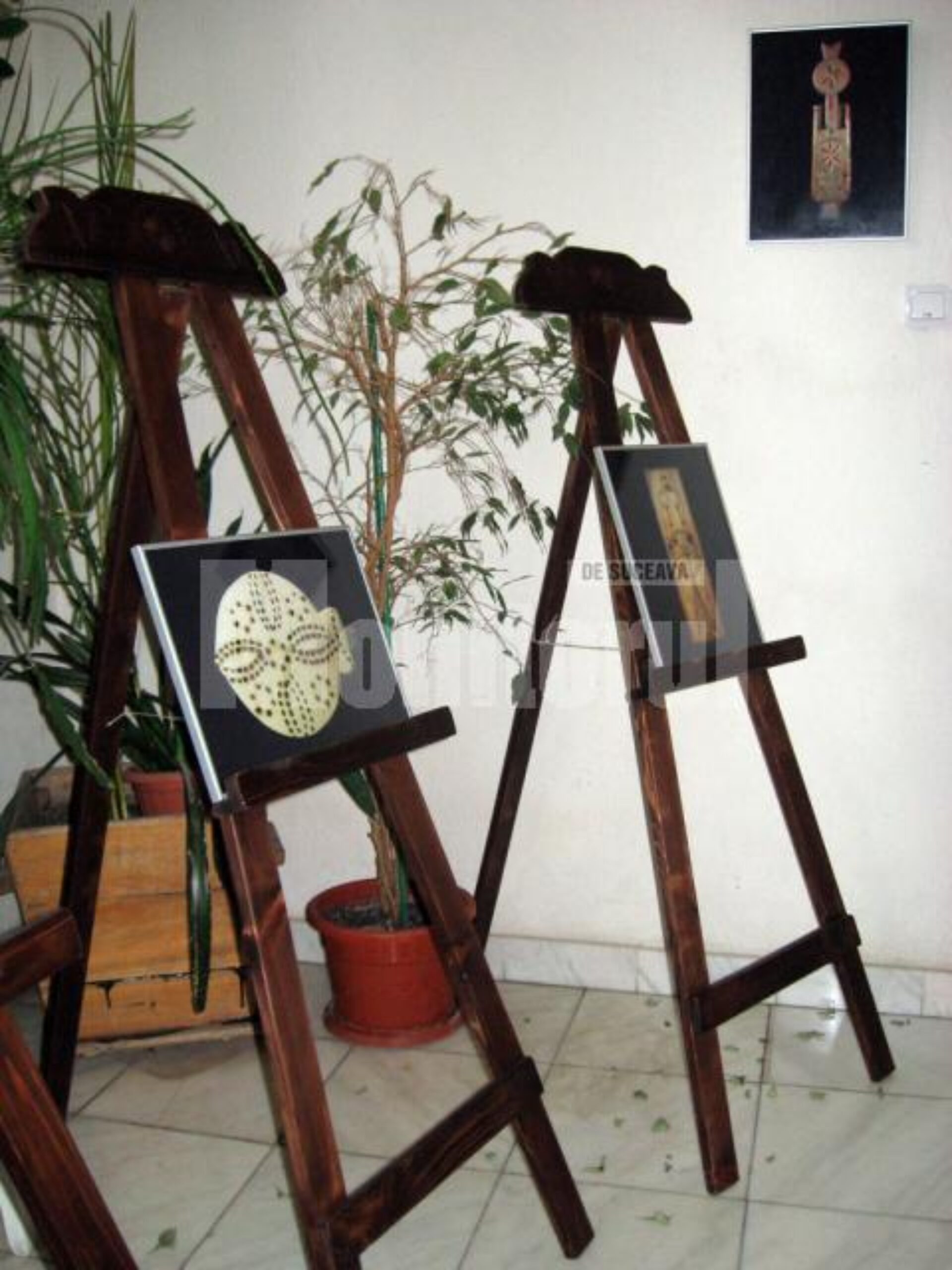 Cele 60 de fotografii etalate (expuse atât pe simeze, cât și pe cele zece șevalete-suport executate de meșterul cioplitor Florin Cramariuc, președintele Asociației Meșterilor Populari din Bucovina) prezintă imagini cu motive ornamentale, așa cum a spus etnograful humorean Elvira Romaniuc, dispuse pe două segmente, pe suportul fragil al cojii de ou (ouă încondeiate) și crestate în lemn (decorațiuni pe diverse obiecte: lăzi de zestre, blidare, scaune, linguri, chiar și pe o șea).