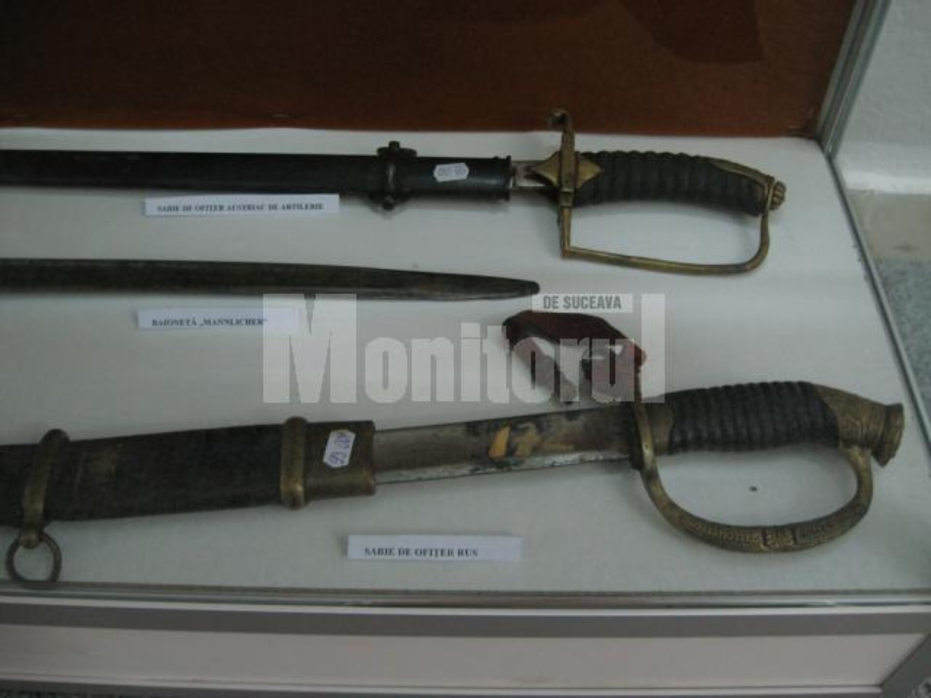 Armele de foc sunt reprezentate de puști austriece Werndl (1875) și Mannlicher (1895), o carabină rusească IJ (1905), pistoale (Mauser) și revolvere (Gasser și Mariette), dar și de o interesantă armă conspirativă, un pumnal-pistol.