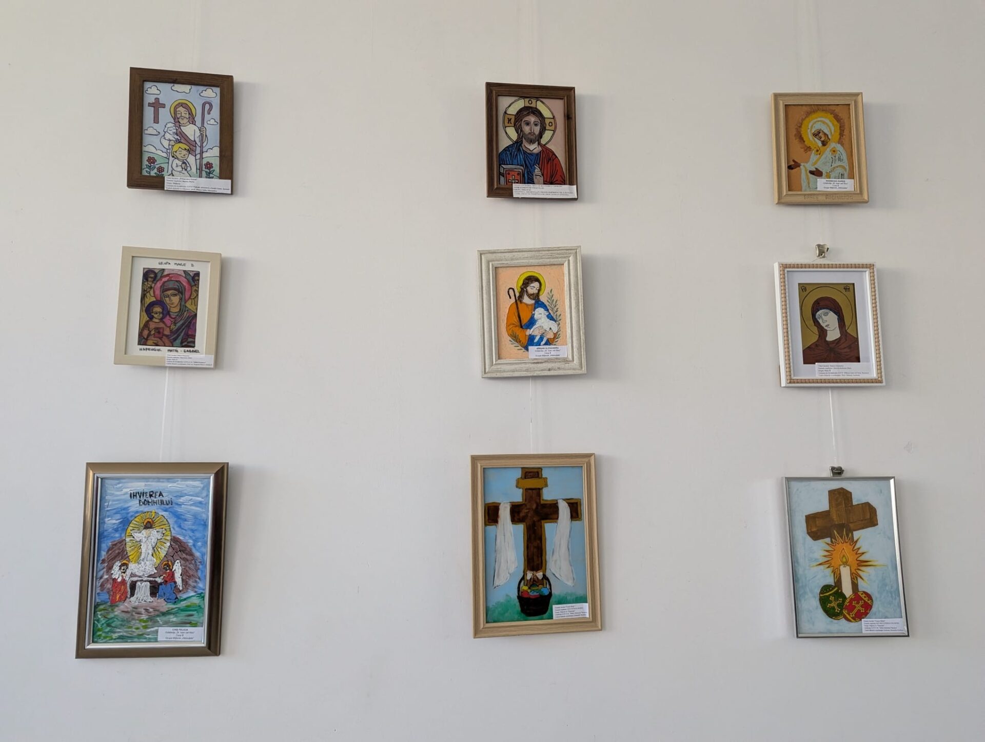 Expoziția reunește 65 de lucrări ale preșcolarilor participanți la concursul „Icoana prin ochi de copil – Culori și cântece religioase”, desfășurat în cadrul proiectului educațional județean „Inimioare cu aripioare”.