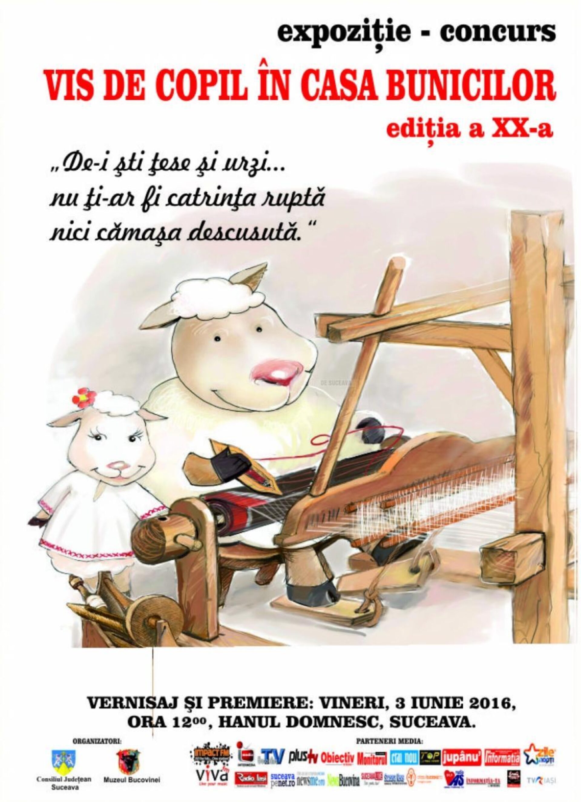 Vernisajul expoziției și festivitatea de premiere vor avea loc în data de 3 iunie a.c., la ora 12.00, la Muzeul Etnografic Hanul Domnesc.