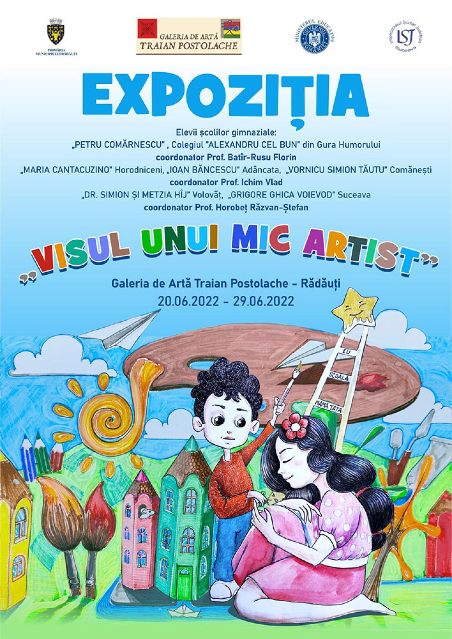 Expoziția de pictură și grafică „Visul unui mic artist”, găzduită de Galeria de Artă „Traian Postolache” din Rădăuți, în perioada 20-29 iunie 2022, este organizată de profesori de educație plastică și vizuală de la Școala Gimnazială „Dr. Simion și Metzia Hîj” Volovăț, Școala Gimnazială „Maria Cantacuzino” Horodniceni, Școala Gimnazială „Ioan Băncescu” Adâncata, Școala Gimnazială „Vornicu Simion Tăutu” Comănești, Școala Gimnazială „Petru Comarnescu” și Colegiul „Alexandru cel Bun” din Gura Humorului.