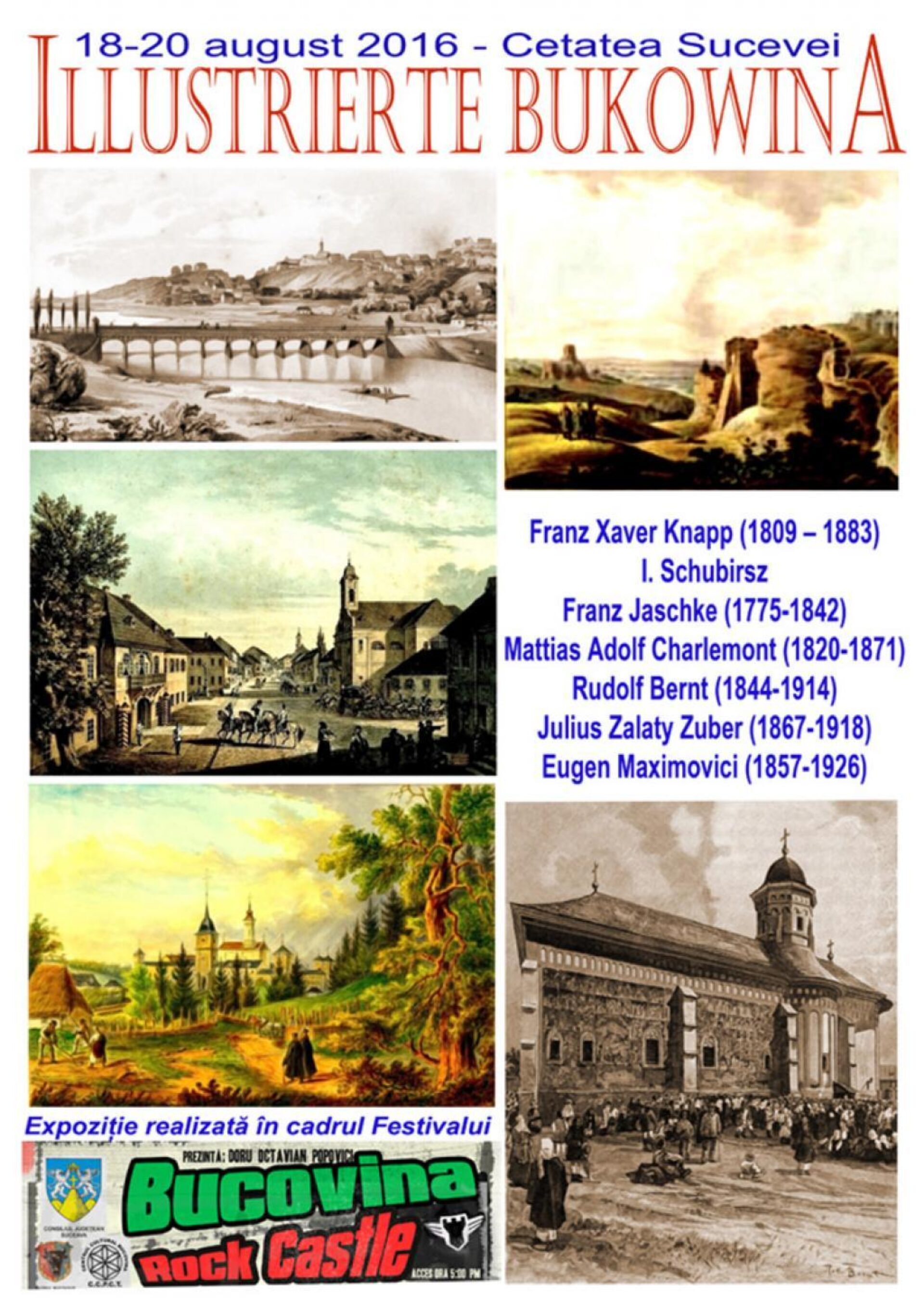 Publicul Festivalului „Bucovina Rock Castle” – festival care se va desfășura în intervalul 18-20 august a.c. pe scena amplasată în șanțul Cetății de Scaun Suceava (scenă care anul acesta va avea ecran de proiecție și acompaniament de efecte vizuale speciale) – va fi întâmpinat pe platoul cetății cu 15 panouri expoziționale, pe care vor fi etalate cca. 100 de imagini printate circumscrise genericului „Illustrierte Bukowina”.