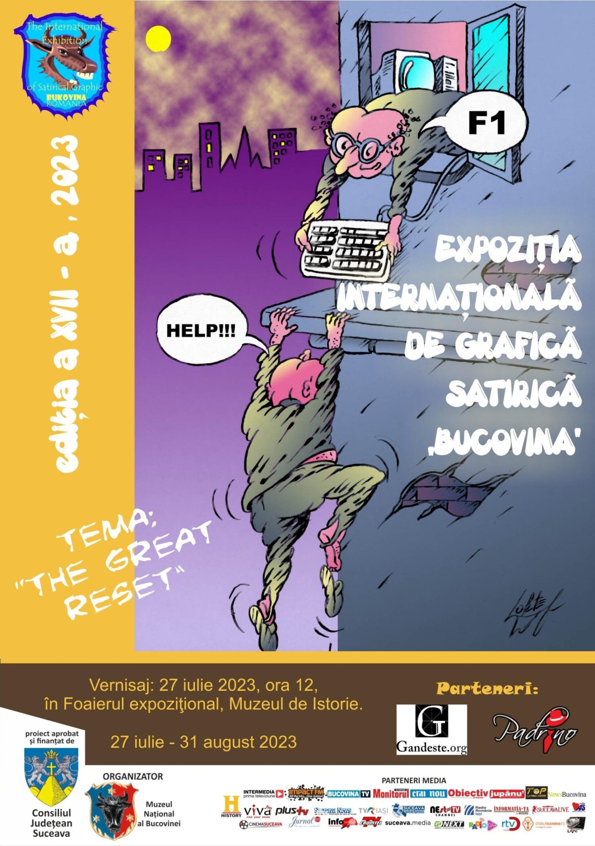 Expoziția Internațională de Grafică Satirică „Bucovina”, ediția a XVII-a, poate fi admirată, în perioada 27 iulie – 31 august 2023, în Foaierul expozițional al Muzeului de Istorie Suceava.