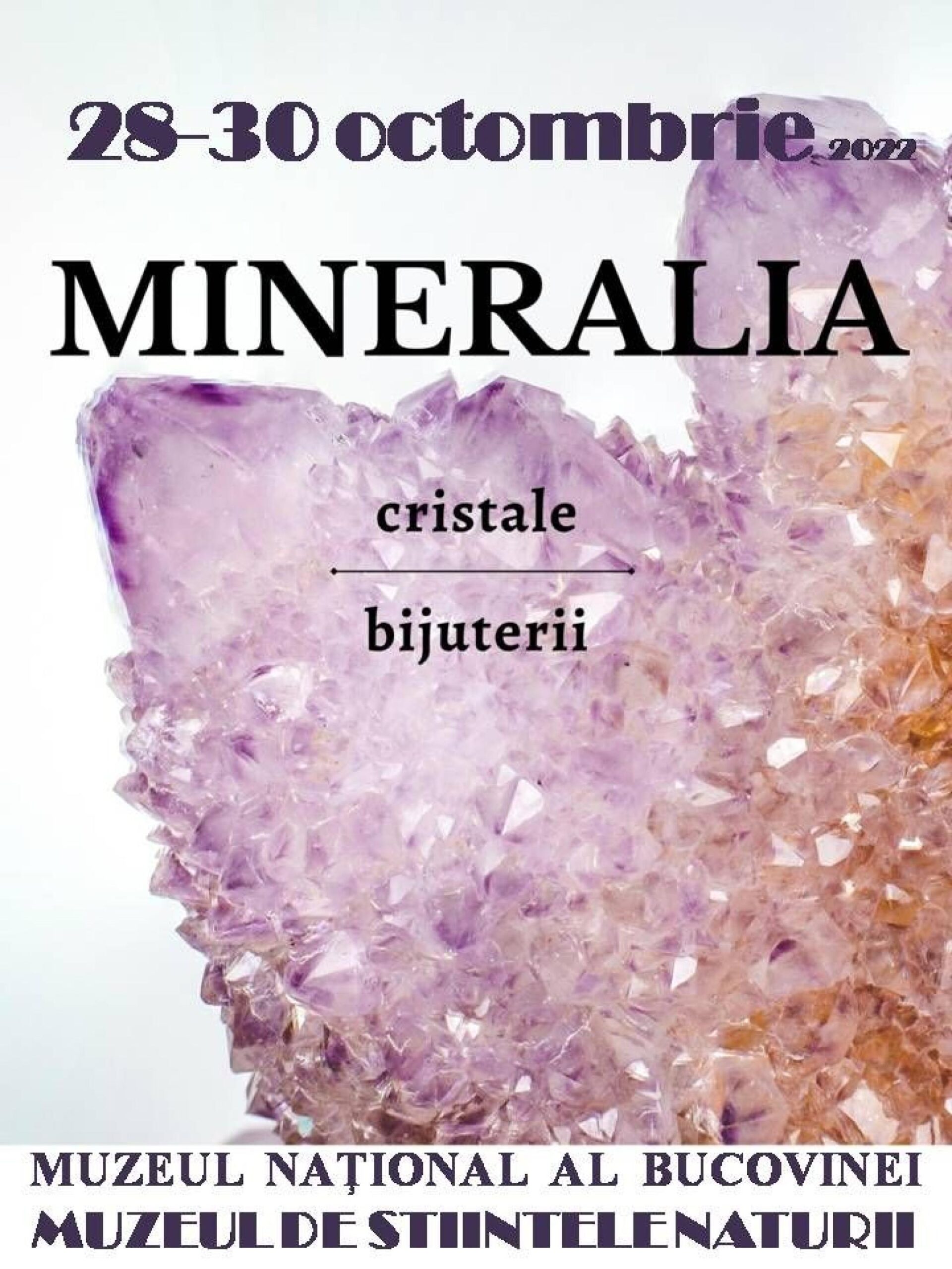La parterul Muzeului de Științele Naturii Suceava va avea loc, în perioada 28-30 octombrie 2022, expoziția „Mineralia”, care revine la Suceava pentru ediția de toamnă. Evenimentul este organizat de Muzeul Național al Bucovinei. Vor fi expuse eșantioane minerale de colecție din malachite, azurite, calcite, turmalină, figurine sculptate din piatră, felii de agat multicolore, jad, granat, chihlimbar, perle, tanzanite, coral, turcoaz și bijuterii dintre cele mai diverse (brățări, medalioane, coliere, cercei sau inele), având ca numitor comun piatra naturală, șlefuită rotund sau fațetată.