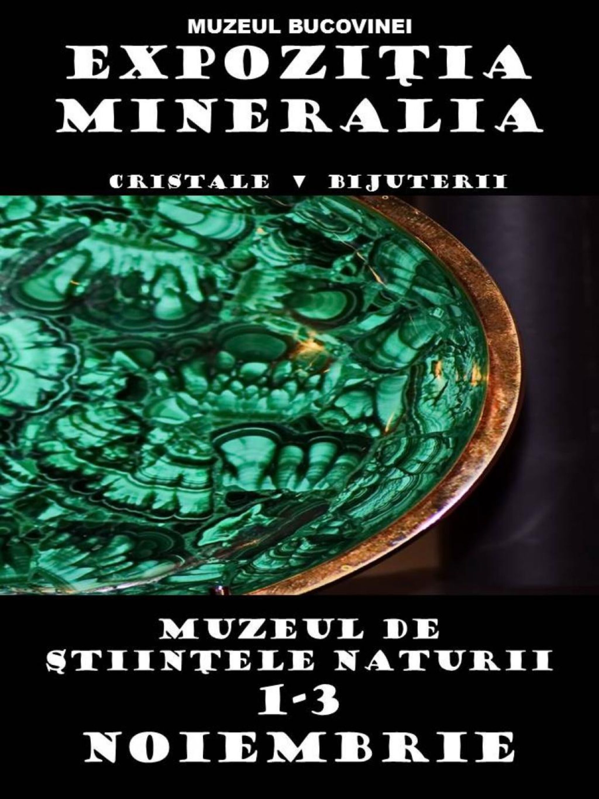 Expoziția Mineralia, Salonul de toamnă, va putea fi vizitată în perioada 1-3 noiembrie, la parterul Muzeului de Științele Naturii din municipiul Suceava.