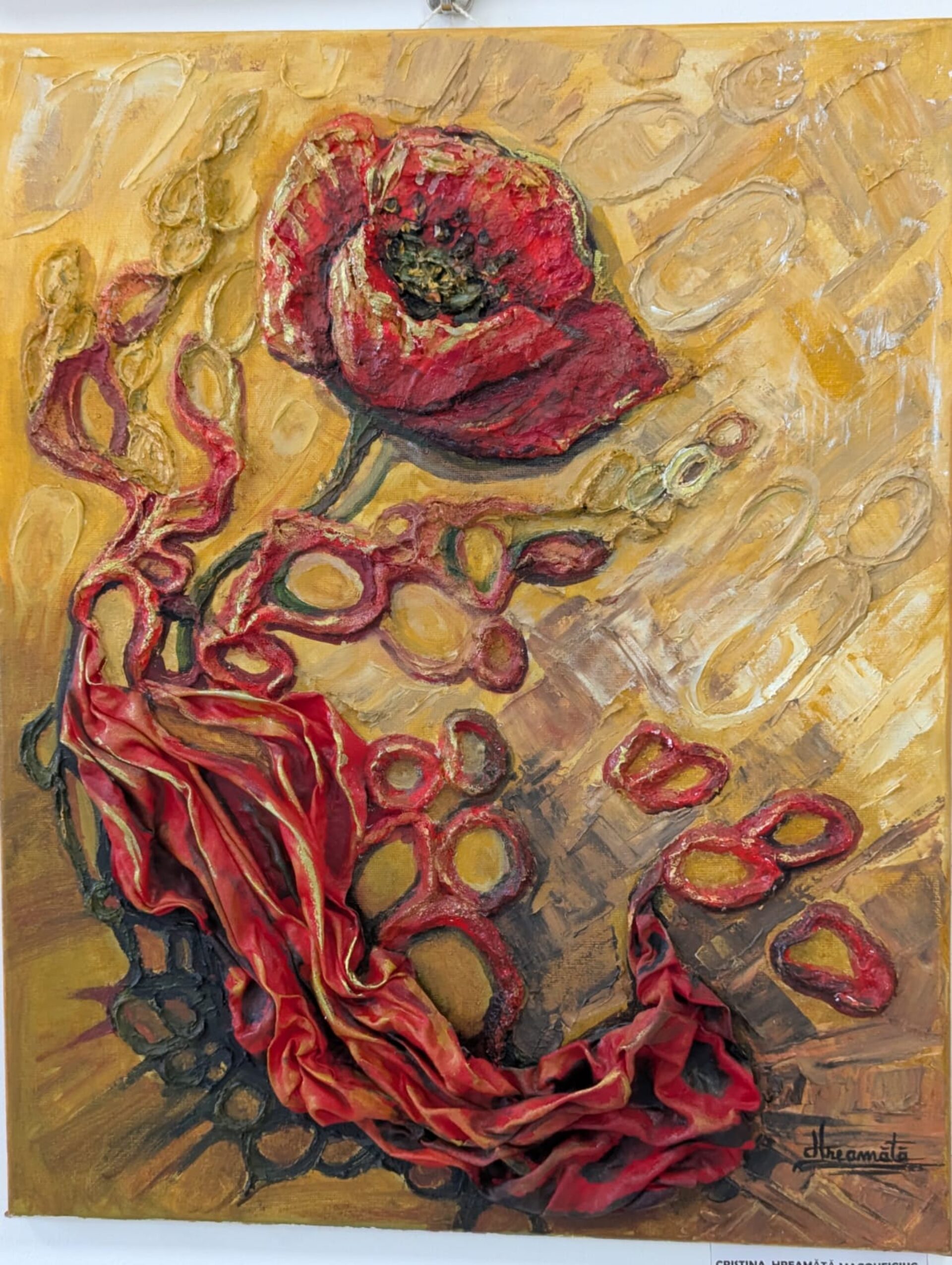 Creațiile copiilor sunt completate de lucrările pictoriței Cristina Hreamătă-Macoveiciuc, care aduc un plus de maturitate artistică și coerență conceptuală expoziției.