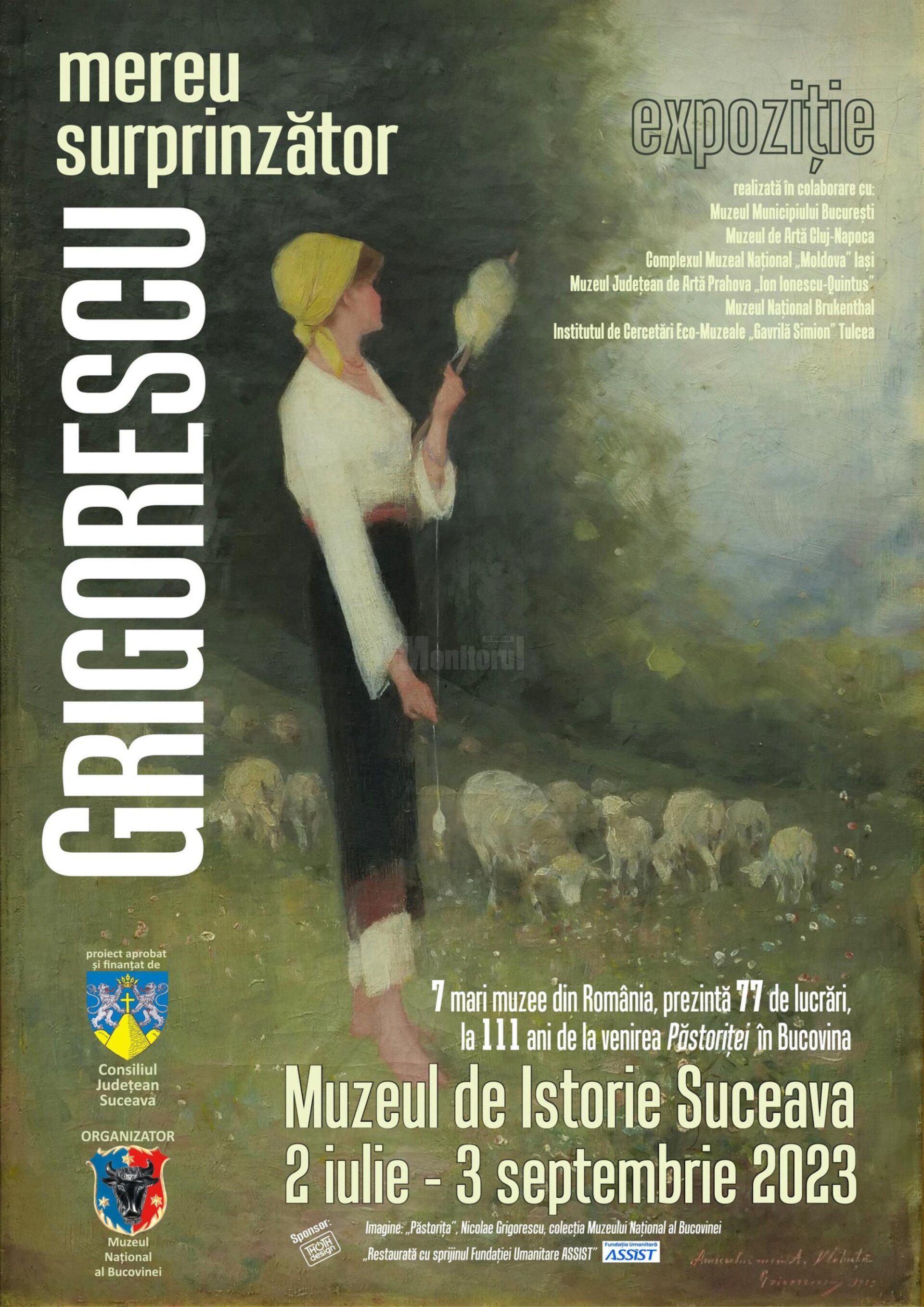 „Regal de artă”, „expoziție monumentală” sunt termenii în care Muzeul Național al Bucovinei anunță expoziția-eveniment, cu lucrări ale pictorului Nicolae Grigorescu, din 2 iulie a.c., la Muzeul de Istorie din Suceava. Expoziția „Nicolae Grigorescu – mereu surprinzător” este organizată după 41 de ani de la prima și singura expoziție vernisată vreodată la Suceava. Conform unui comunicat de presă remis de Muzeul de Istorie, șapte mari muzee din România prezintă 77 de lucrări,„ la 111 ani de la venirea Păstoriței lui Grigorescu în Bucovina”.