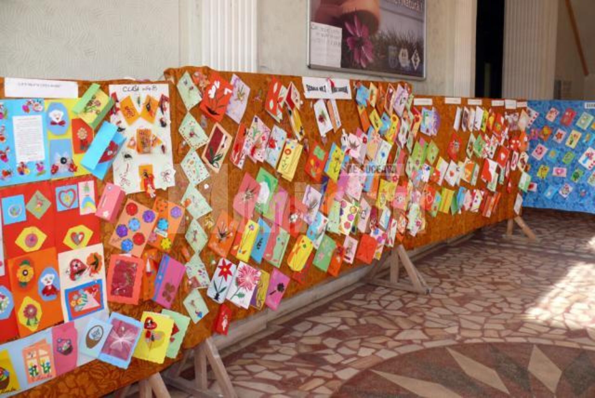 Expoziția de felicitări din holul administrației locale este organizată de Școala nr. 3 „Mihail Sadoveanu”. Pentru a o ajuta pe Maria, dar și pentru a promova talentul și creativitatea copiilor din grădinițele și școlile din zona Fălticeni, alături de copiii de la Școala “Mihail Sadoveanu” au mai expus felicitări elevi și preșcolari din Dolheștii Mari, Fîntîna Mare, Spătărești, Valea Glodului, Oniceni.