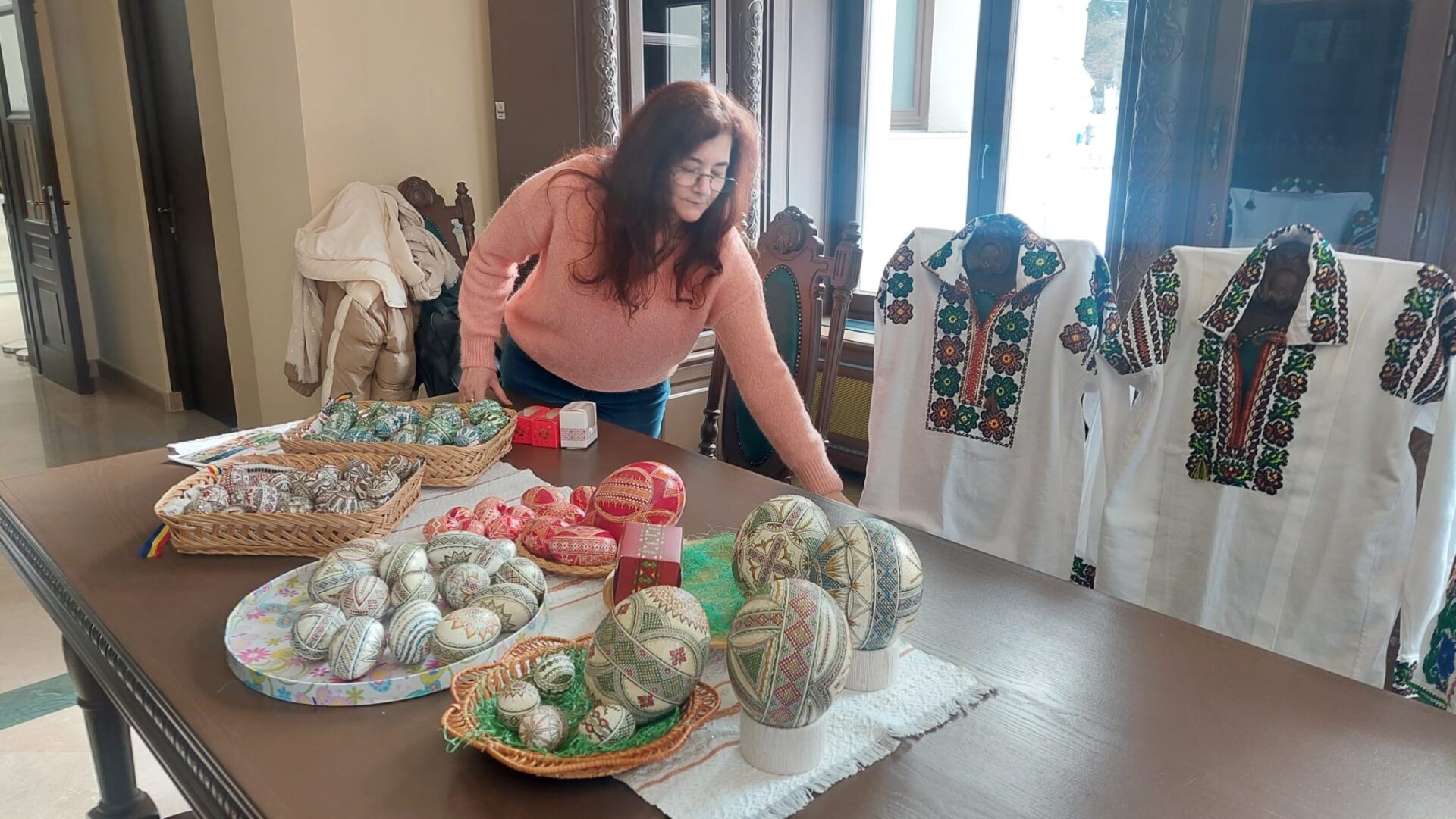 Pe lângă ouăle încondeiate, artista populară din Ciocănești oferă spre vânzare și cămăși populare cusute manual de mama ei, în vârstă de 75 de ani. La o cămașă se lucrează aproximativ patru luni și se vinde cu 1.500 de lei.