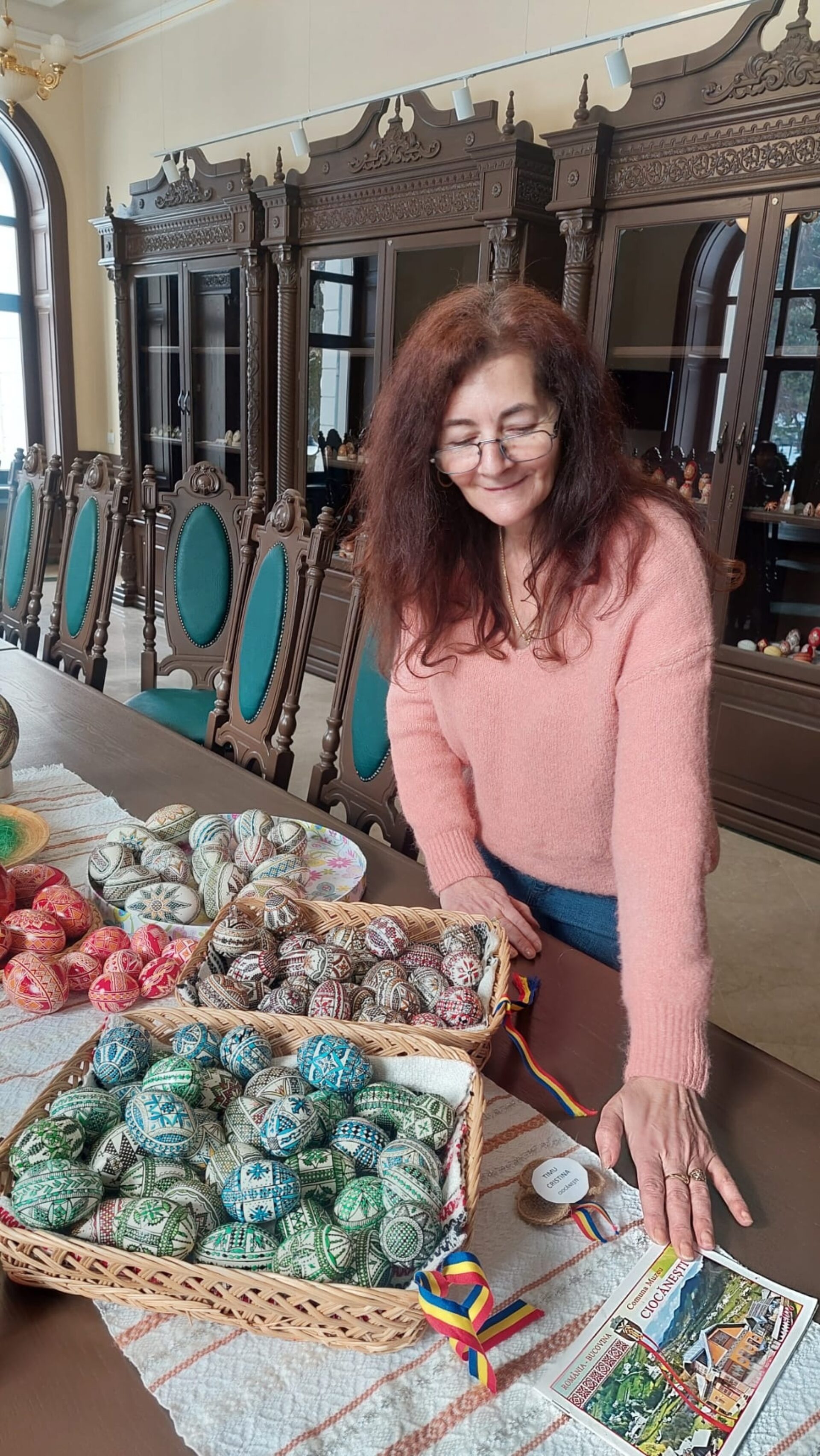 În fiecare săptămână, Cristina aduce la cazinou aproximativ 100 de ouă pictate, ouă de prepeliță, de găină, de rață, de gâscă și de struț. Spune că de peste 30 de ani încondeiază ouă și poate lucra pe orice coajă de ou. Pentru ca „materia primă” să ajungă în forma care încântă turiștii este nevoie de câteva ore pentru ouăle de mici dimensiuni și până la o săptămână, cu un program de 8 ore pe zi, în cazul ouălor de struț, în funcție de culorile folosite și de modelul ales. Prețul este pe măsura muncii înglobate, de la 20-25 de lei și până la 450 și chiar 500 de lei, cele de struț, cu modele mai elaborate.