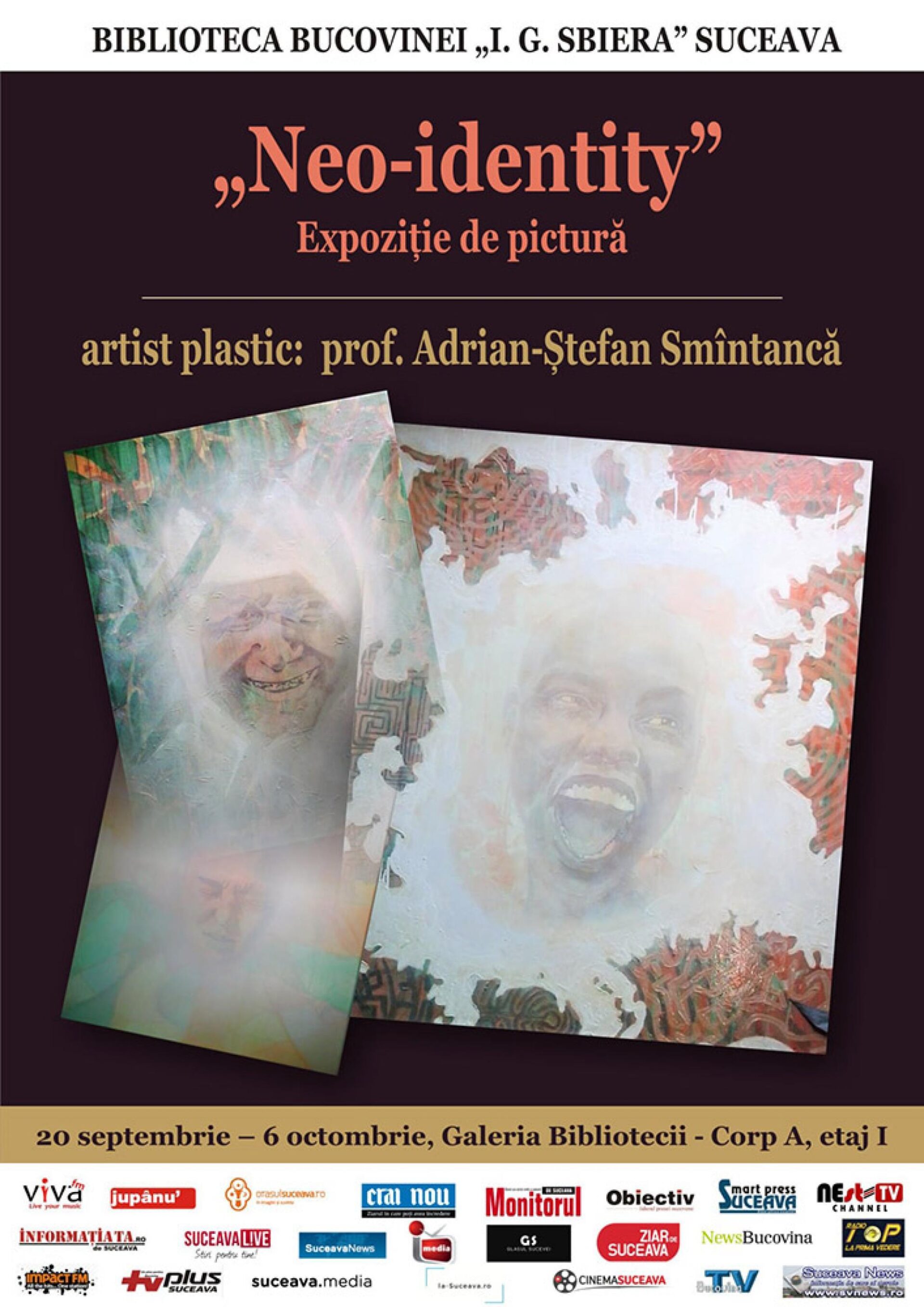 O expoziție personală de pictură semnată de prof. Adrian-Ștefan Smîntancă, intitulată „Neo-Identity”, reprezentând 6 portrete pictate în tehnica mixtă de culori acrilice, ulei și solvenți, poate fi admirată, până pe 6 octombrie 2021, la Galeria Bibliotecii Bucovinei „I.G. Sbiera”, Corpul A, Etaj. 1. Autorul lucrărilor ne-a spus că în această expoziție „sunt reprezentate portrete, o experiență a cunoașterii articulând universalitatea limbajului plastic și posibilitățile sale de exprimare în complexitatea fenomenelor artistice și dinamica societății contemporane post-pandemice. Demersul conceputului expozițional formulează abordările sincretice ale metalimbajelor conceptului disertației mele despre «up-grade», conform căreia, călătoria ca act de cunoaștere particularizează acea expresie prin semnele comunicabile ale recunoașterii, ce conțin prefigurările experiențelor de manifestări individuale și sociale”.